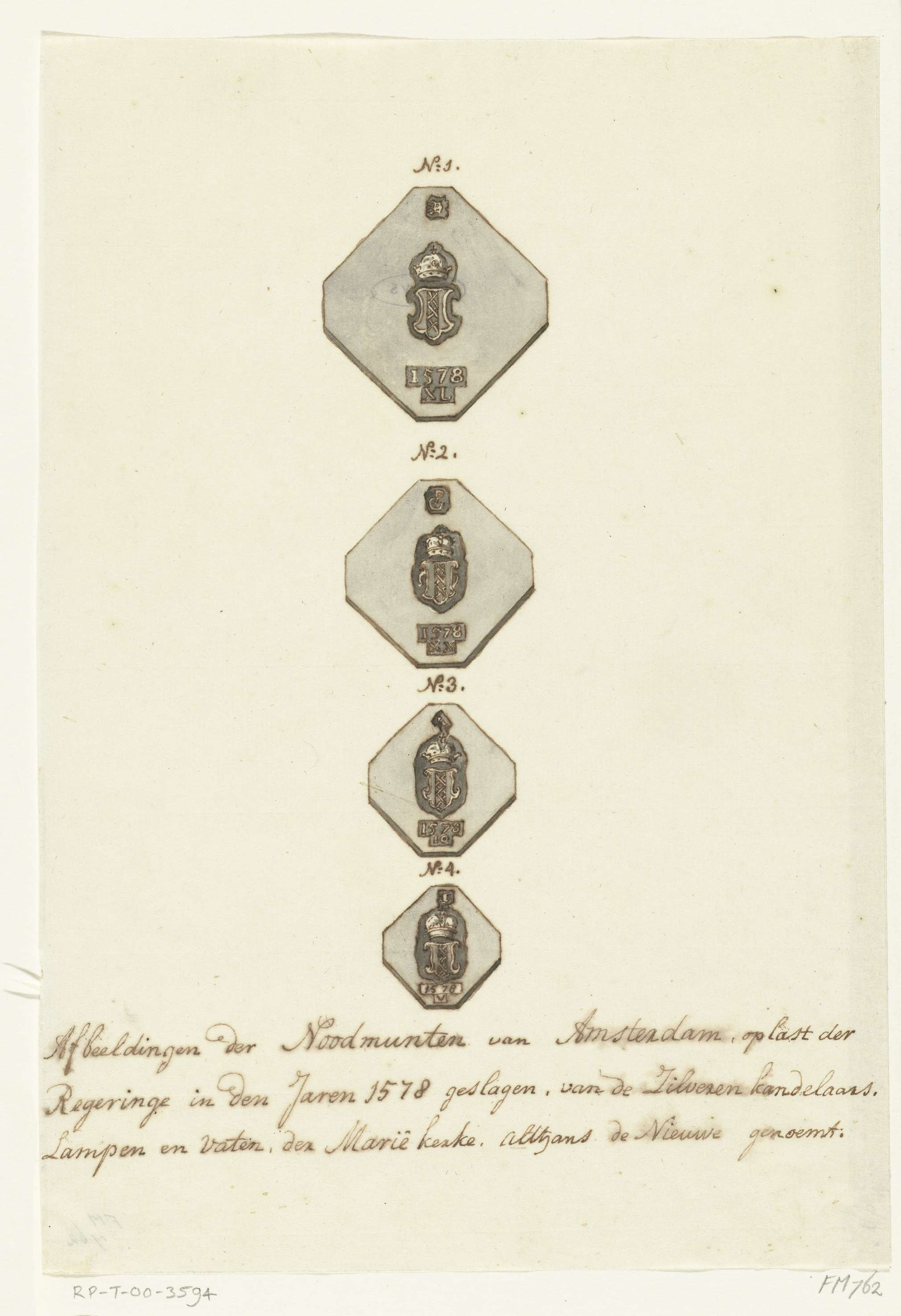 Twee papieren noodmunten uit het beleg van Leiden, 1574