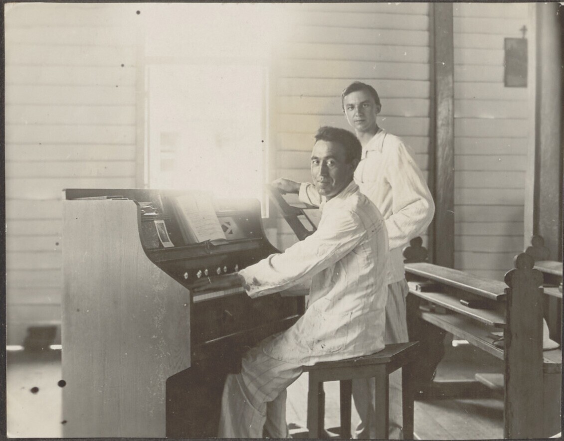 Pater Martien Gloudemans en pater Kouwenhoven in sla...
