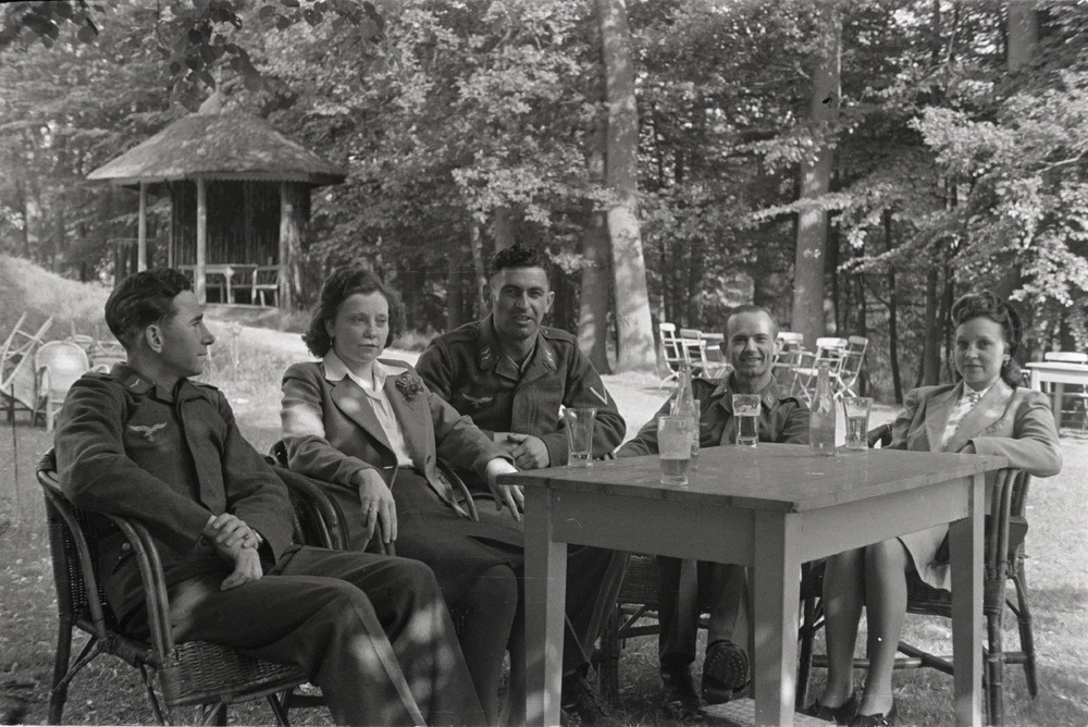 Een aantal Duitse militairen na diensttijd, biertje,...