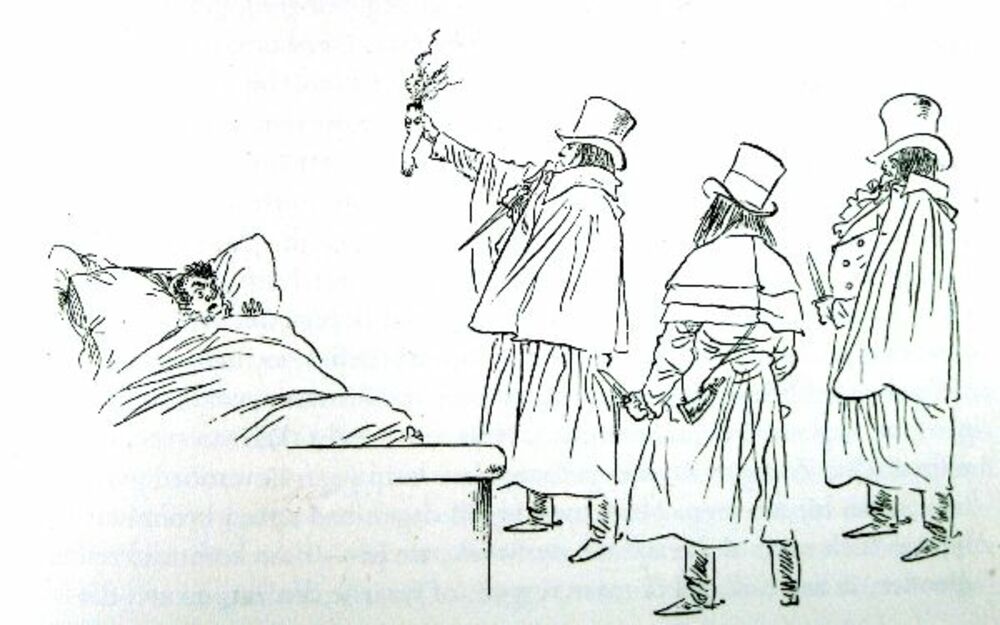Zwart-wit foto van het inhalen van de pastoor in Her...