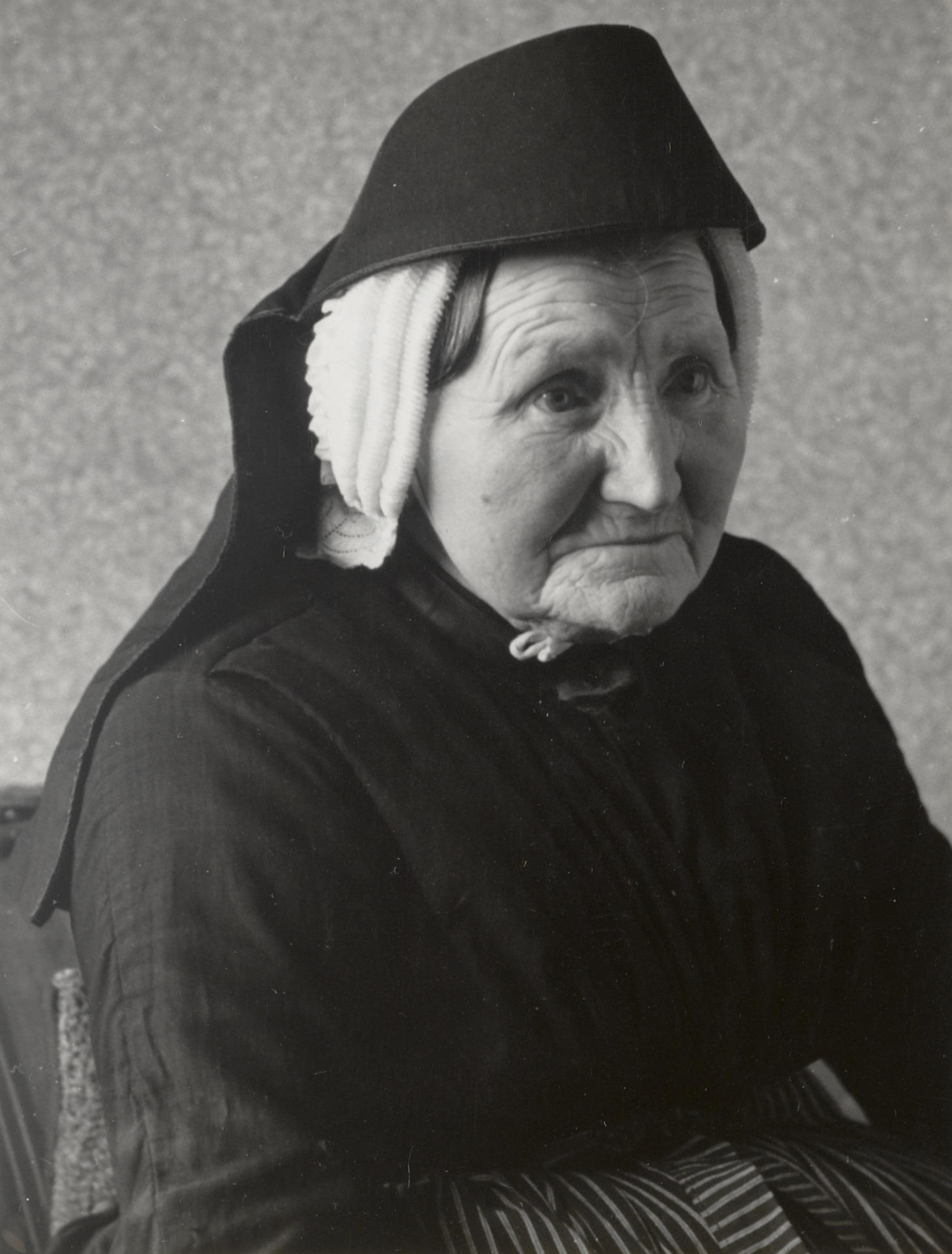 Vrouw uit Striep in Terschellinger dracht, 1950 (zwa...