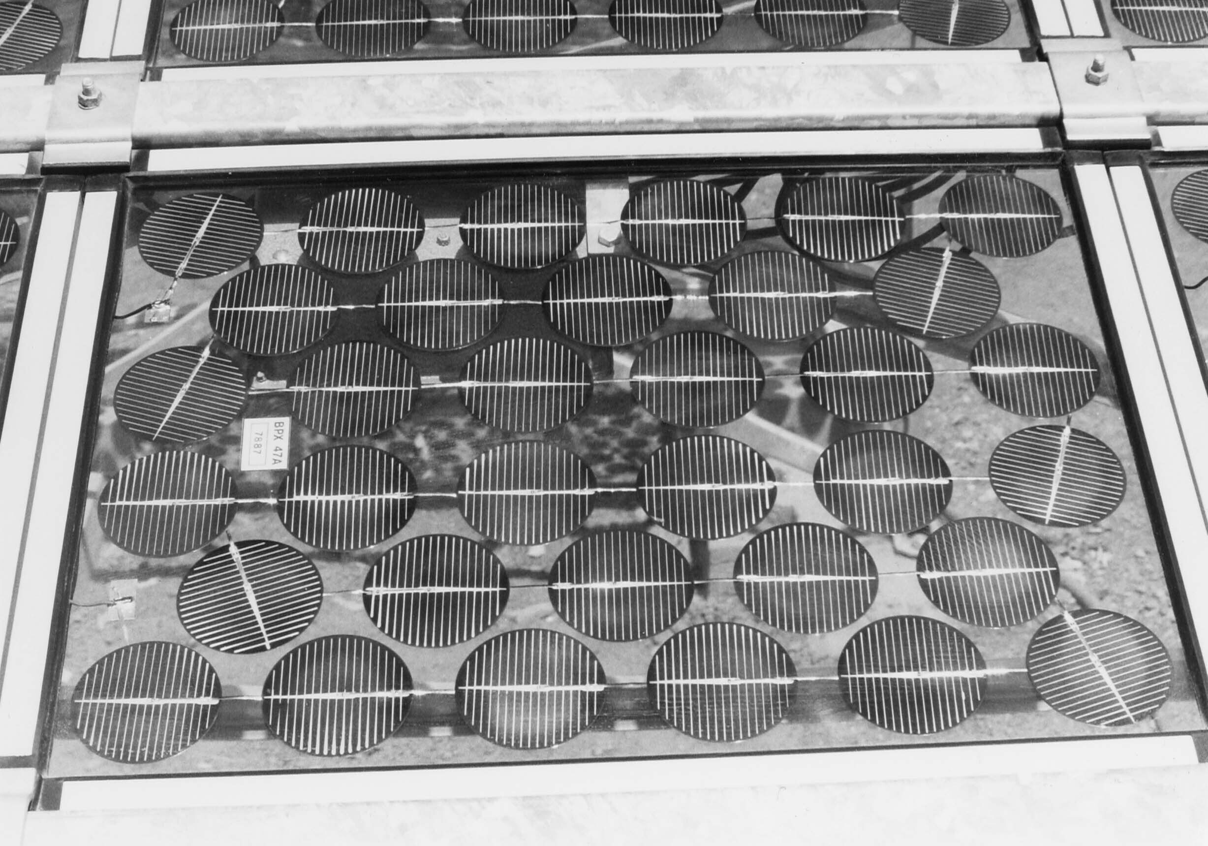 Overzichtsopname van zonnepanelen, een stroomomvorme...