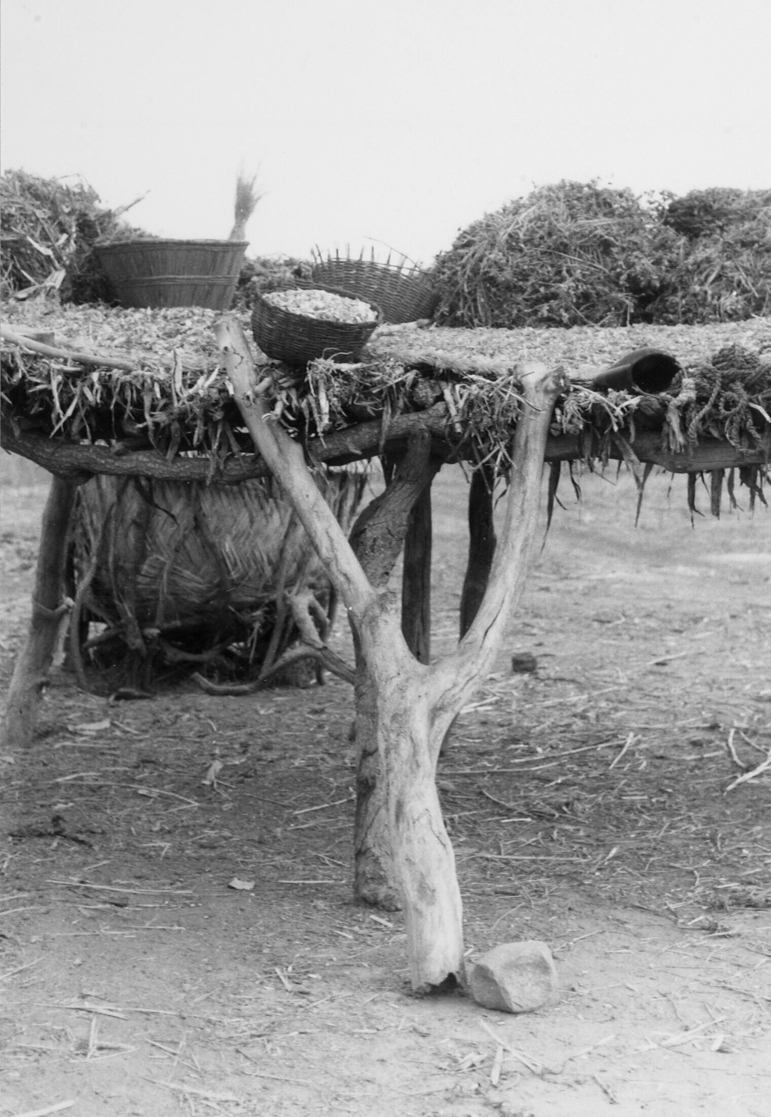 Slaapplaats op het dakterras van een lemen Dagari huis