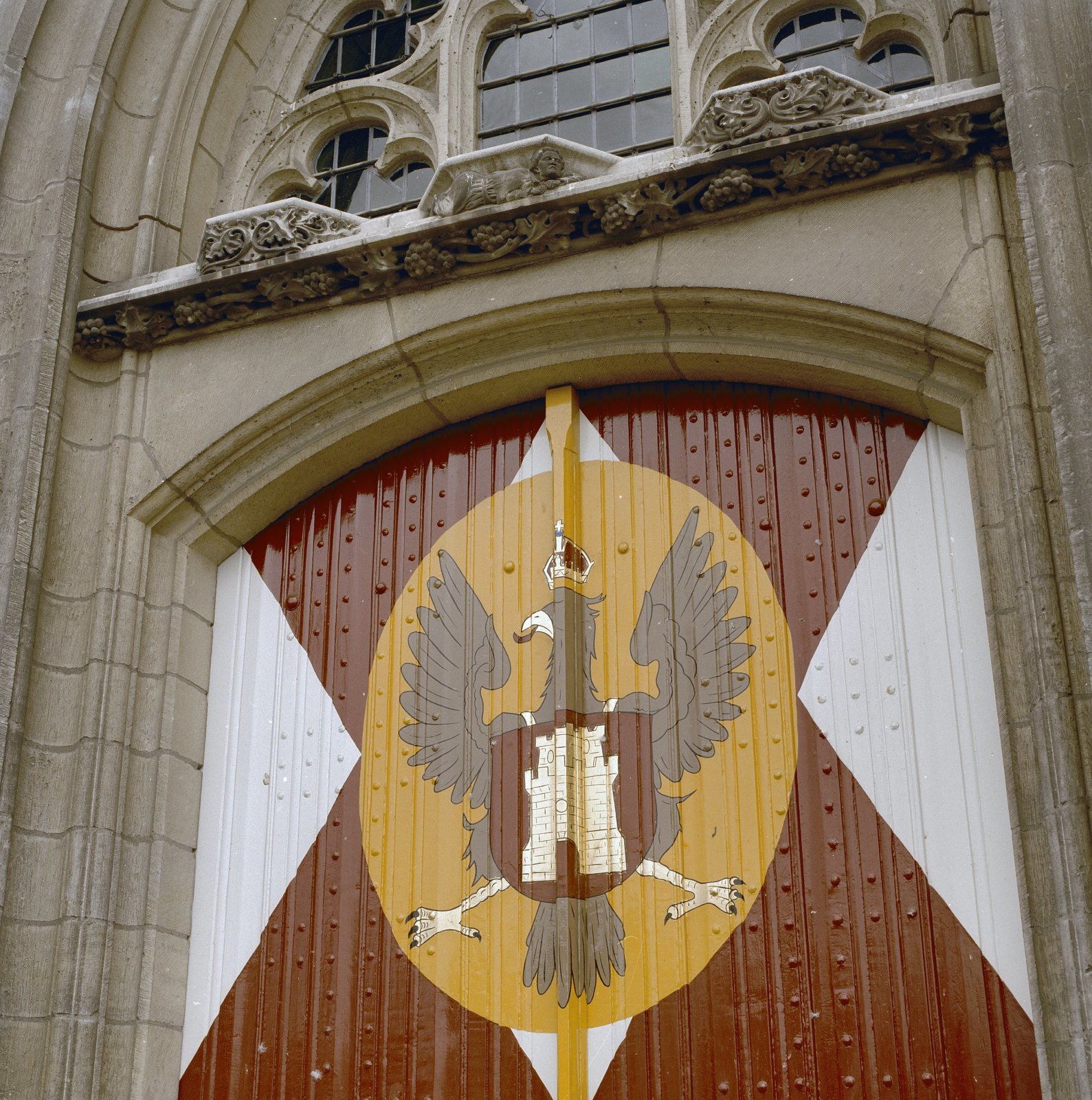 De dubbele deur in de voorgevel aan de Markt, voorzi...