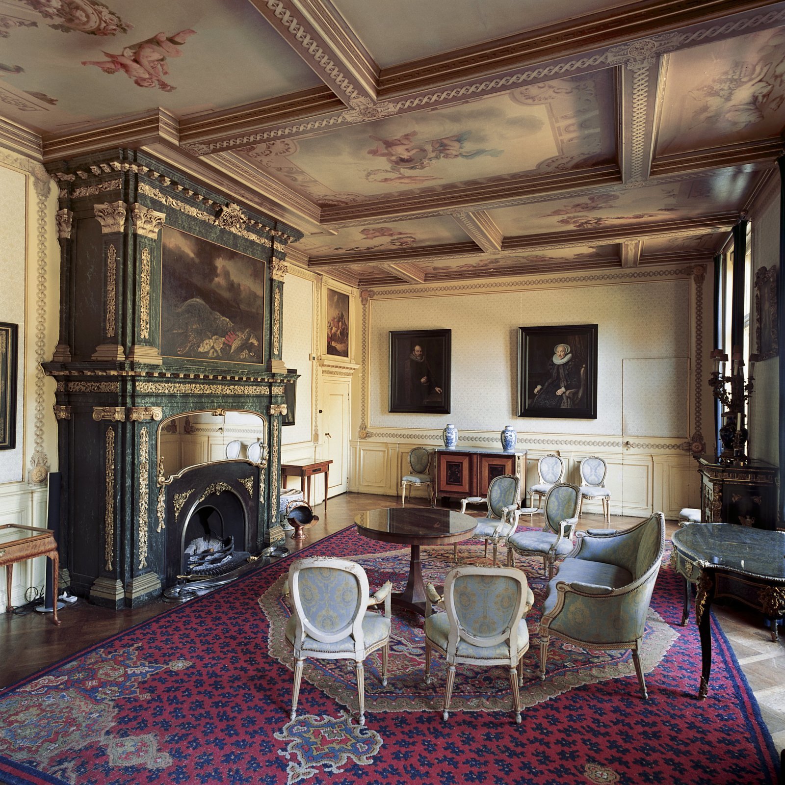 Interieur, Blauwe Salon, met cassettenplafond en zev...
