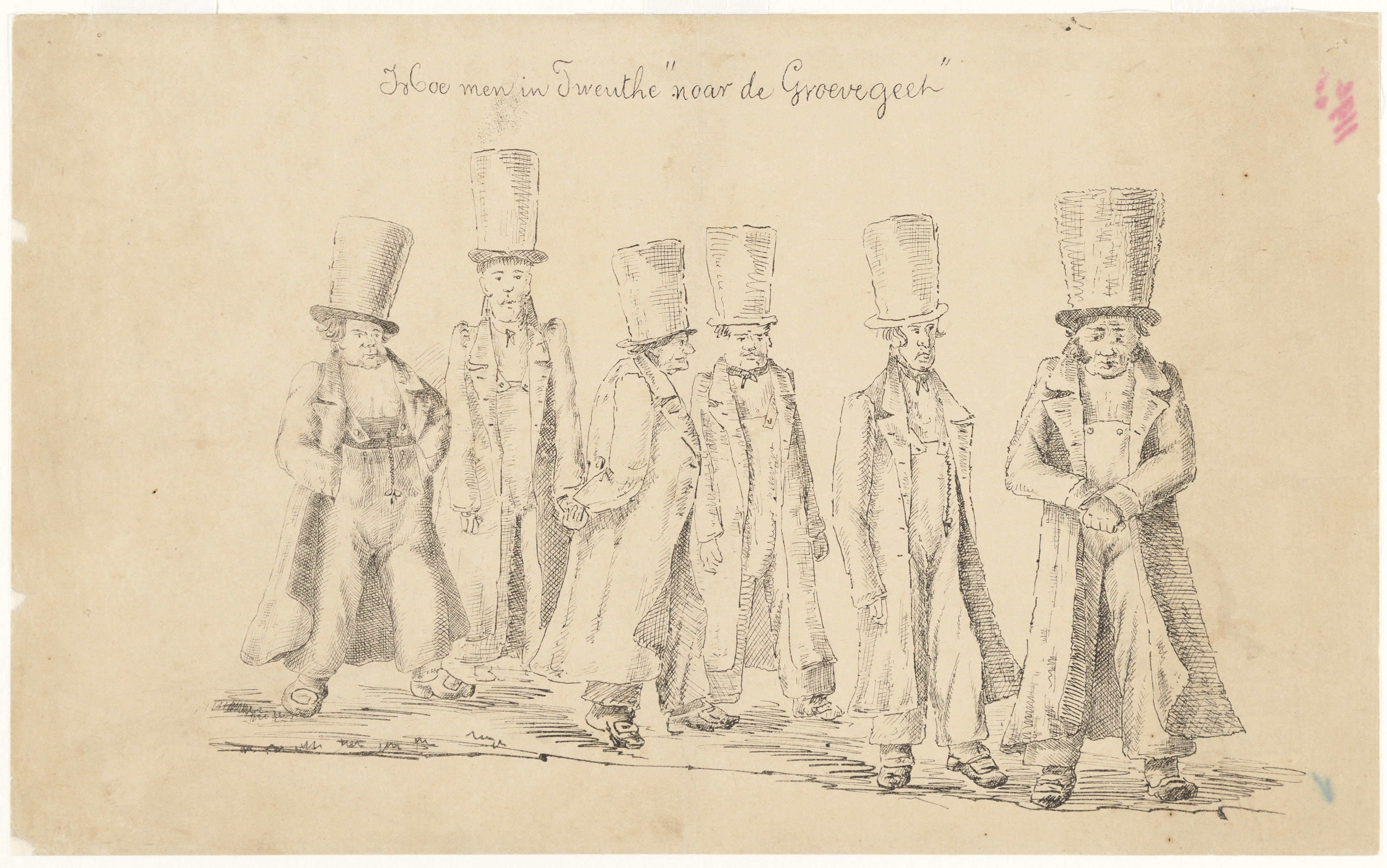 Twentse mannen in begrafeniskleding, circa 1860