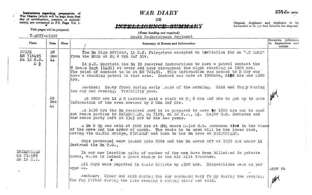 War Diary South Saskatchewan Regiment, 1 nov. - 31 d...