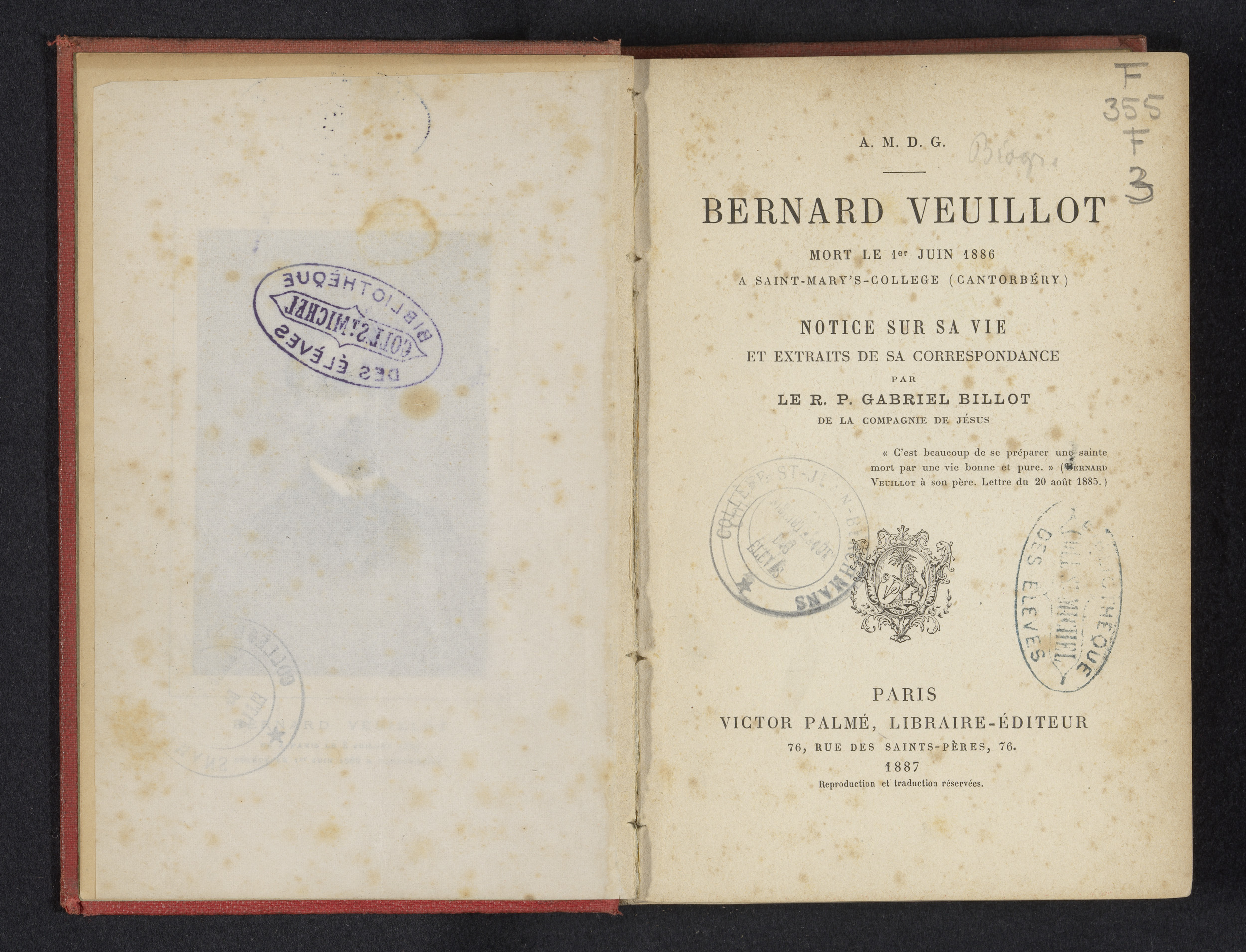 Bernard Veuillot mort le 1er Juin 1886 à Saint-Mary'...