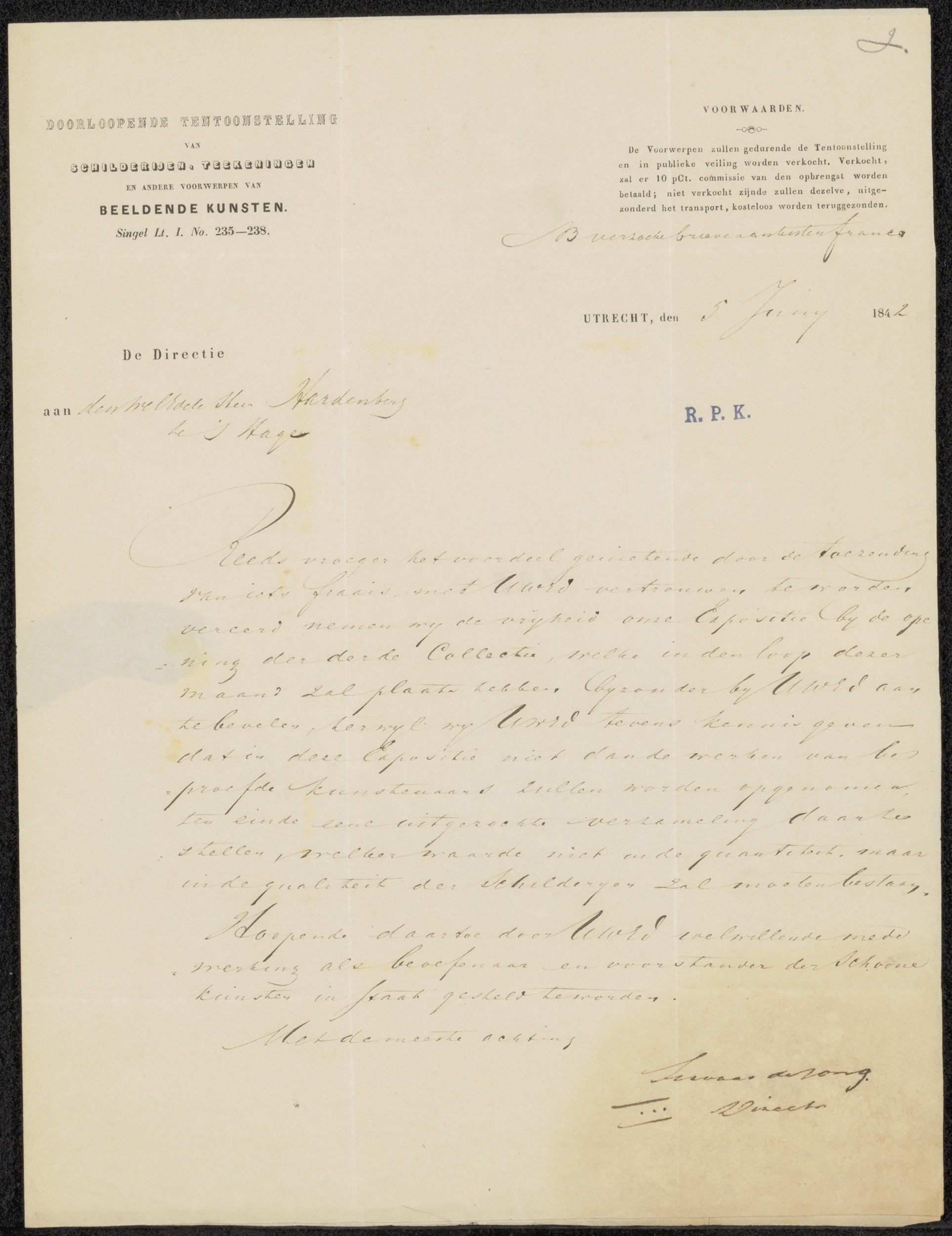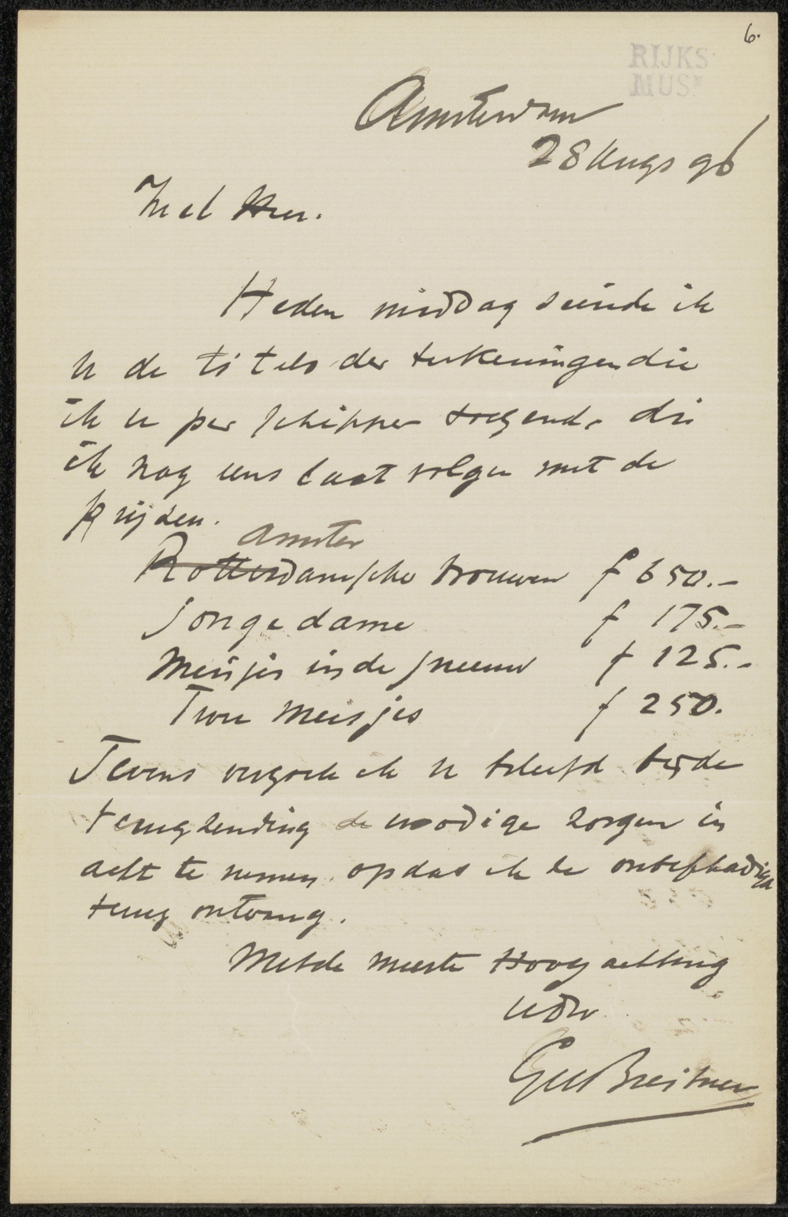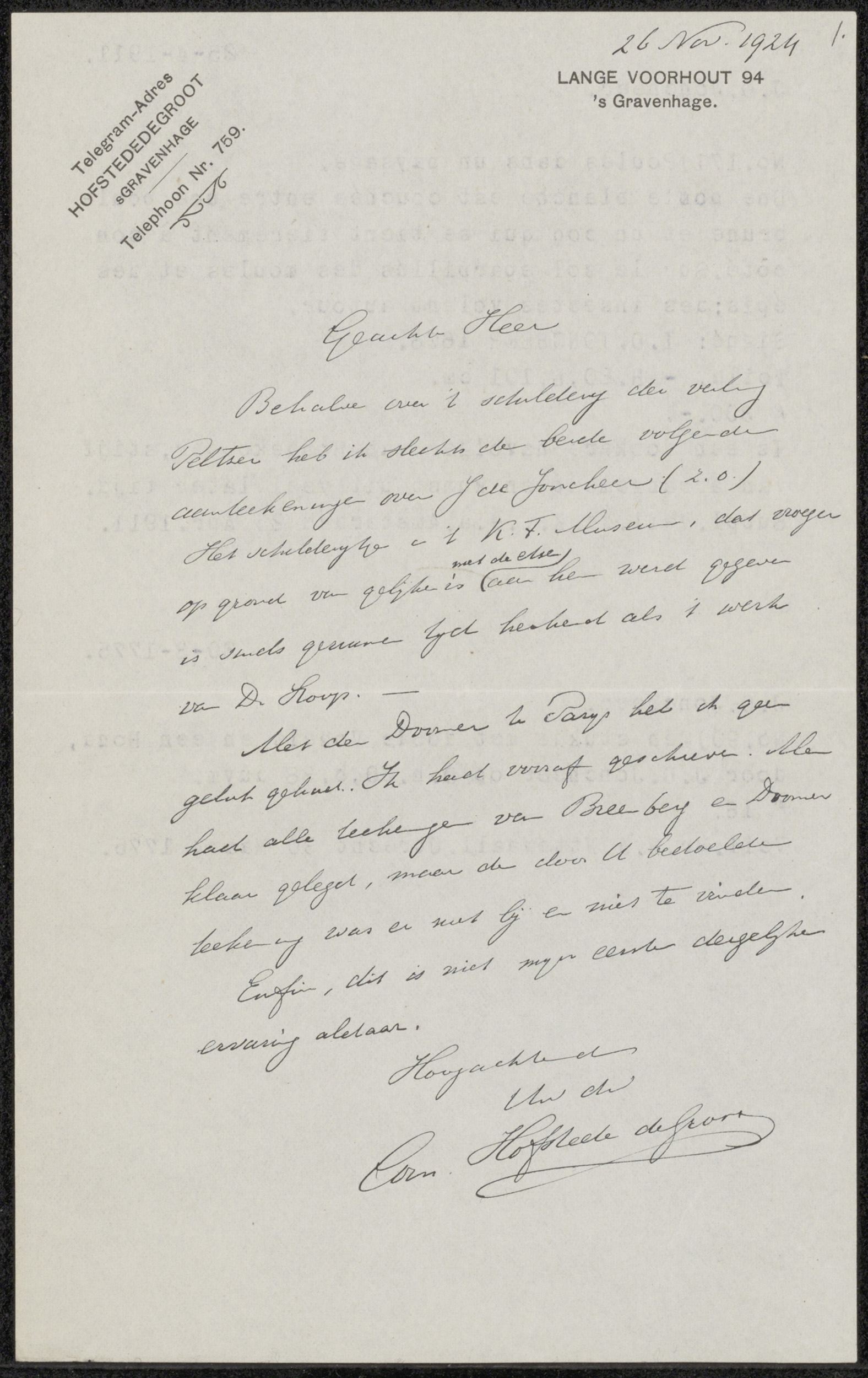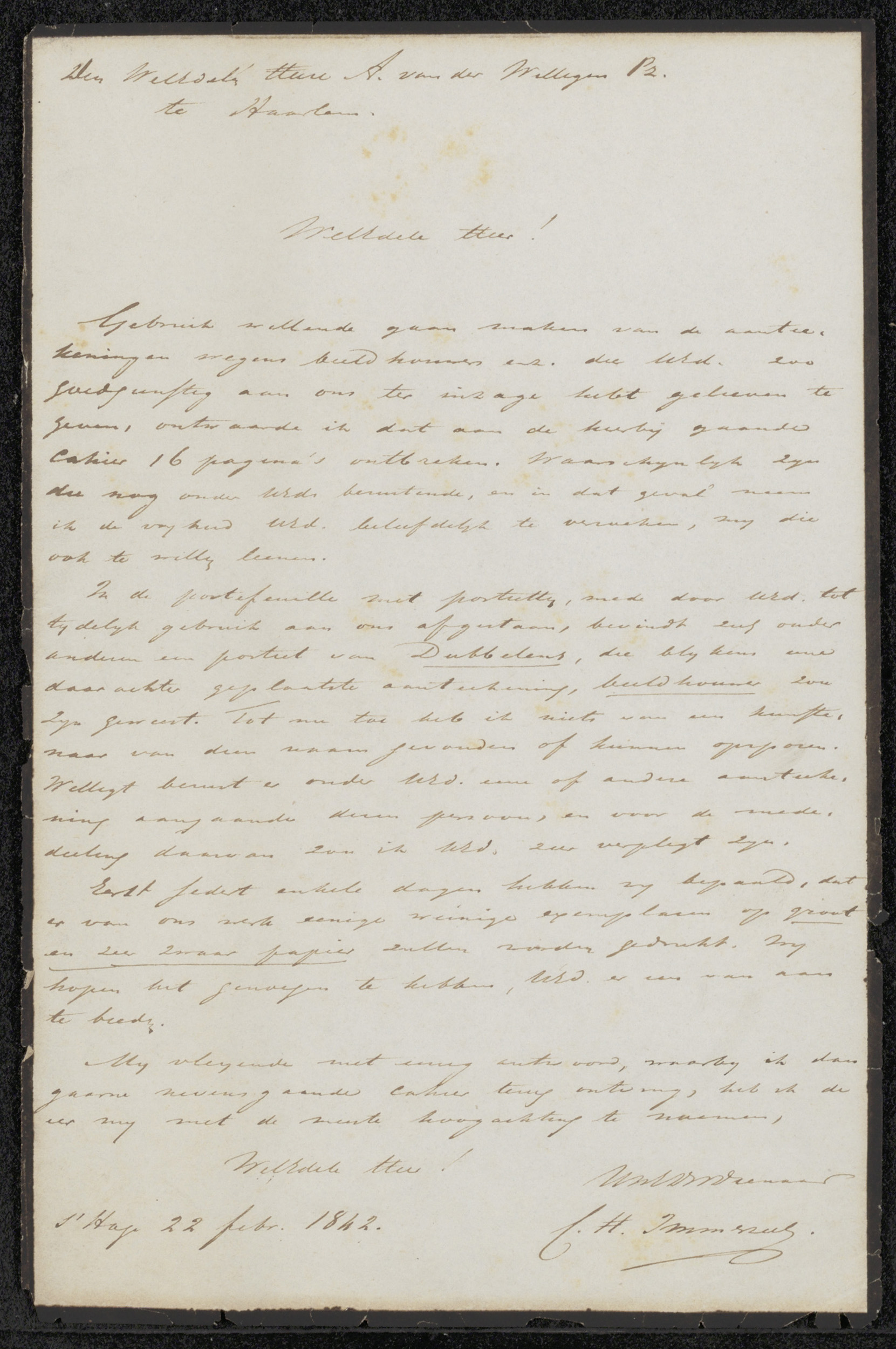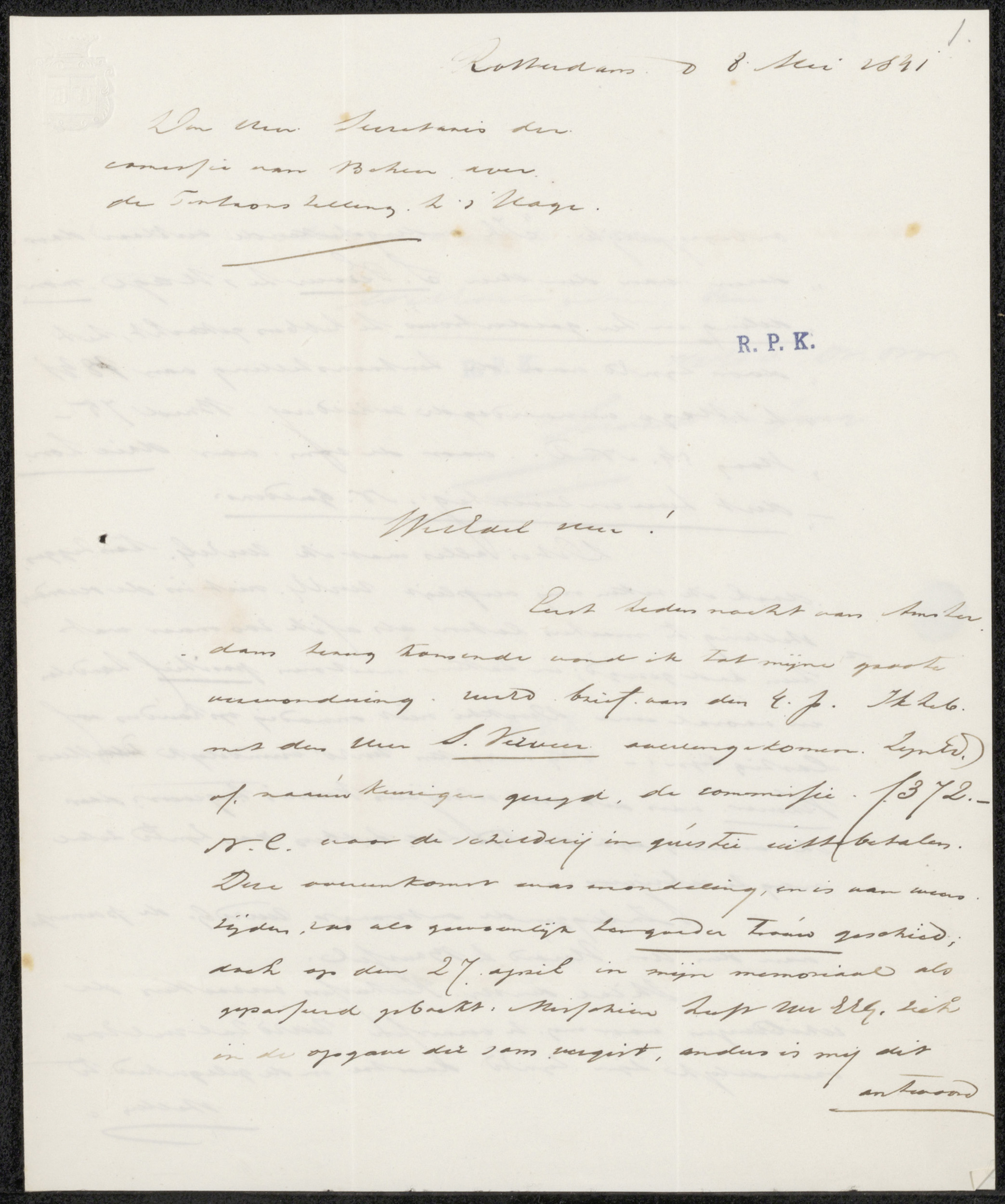 Brief aan G.M.C. Hooft, secretaris van de commissie ...