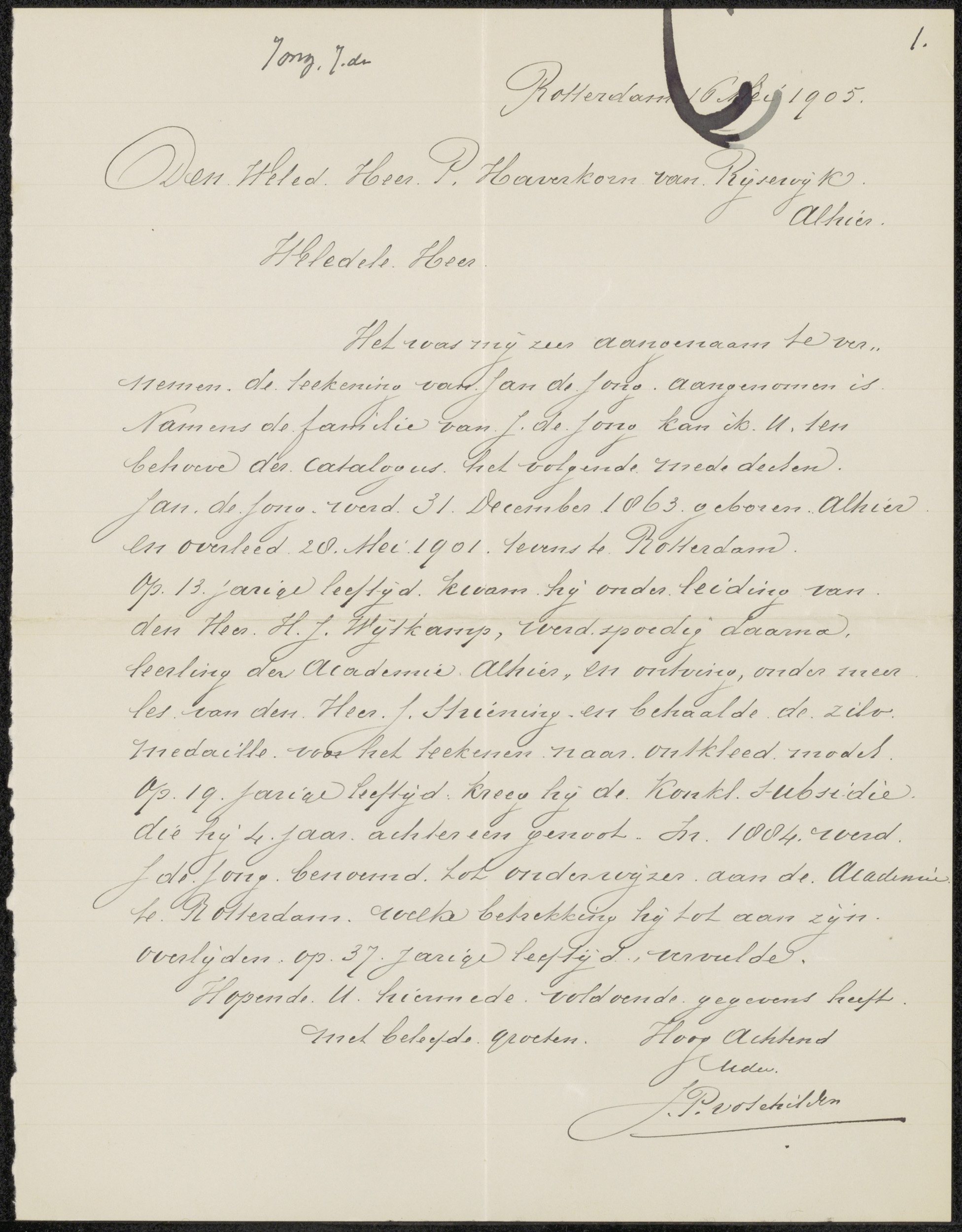 Brief aan onbekend (vermoedelijk Pieter Haverkorn va...
