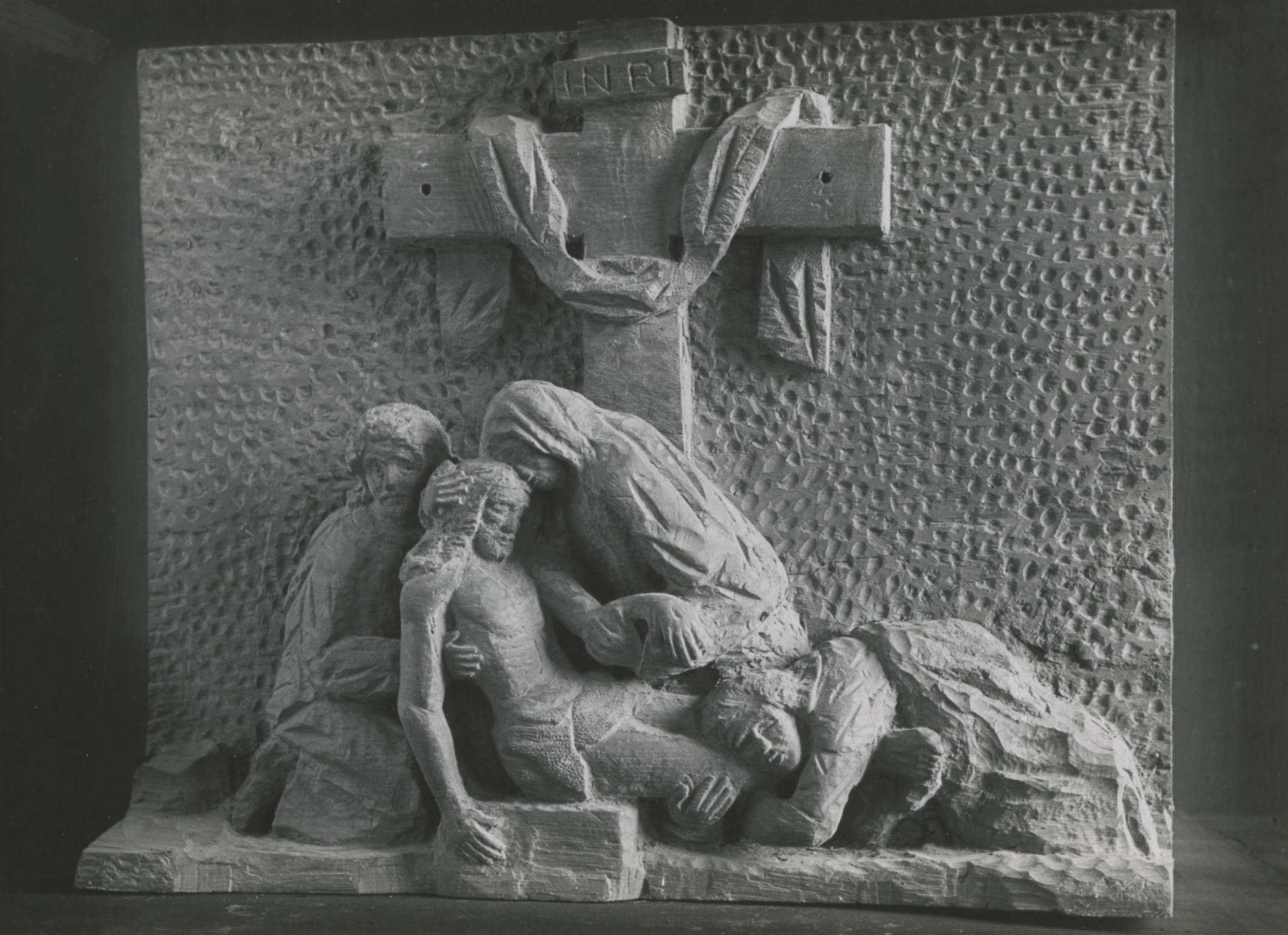Beeldsnijwerk van de kruisafname, foto 1947 (zwart-w...