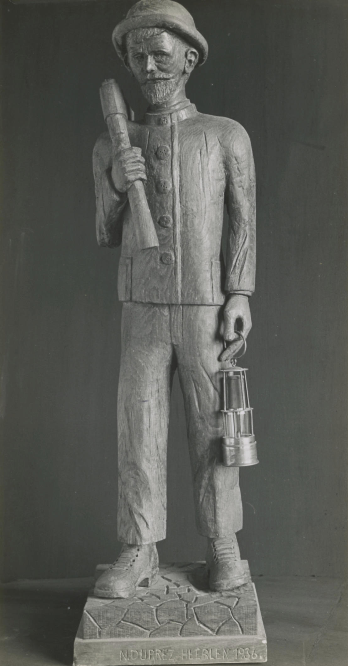 Beeld van een mijnwerker (zwart-wit foto)
