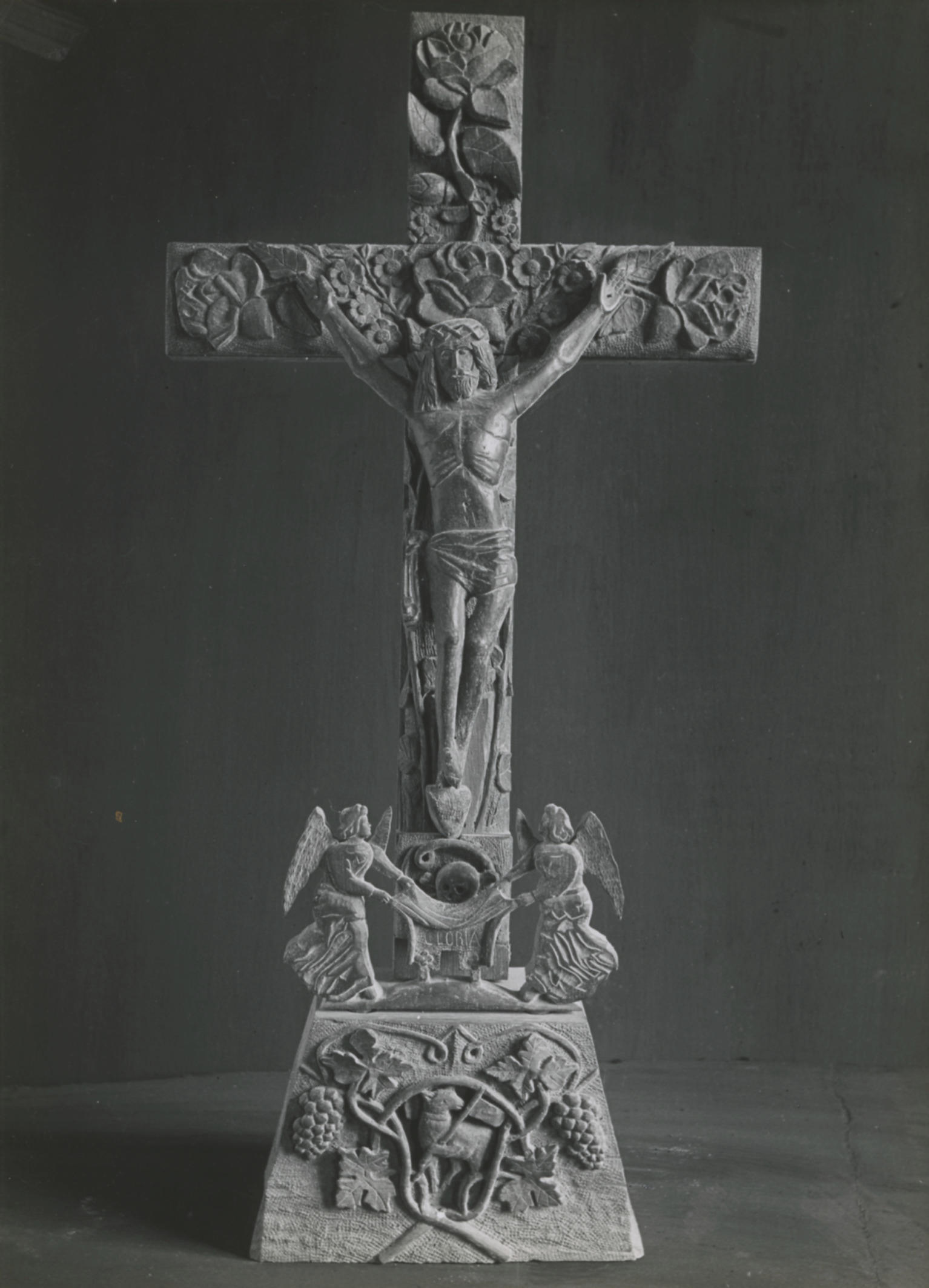 Beeld van Christus aan het kruis, foto 1947 (zwart-w...