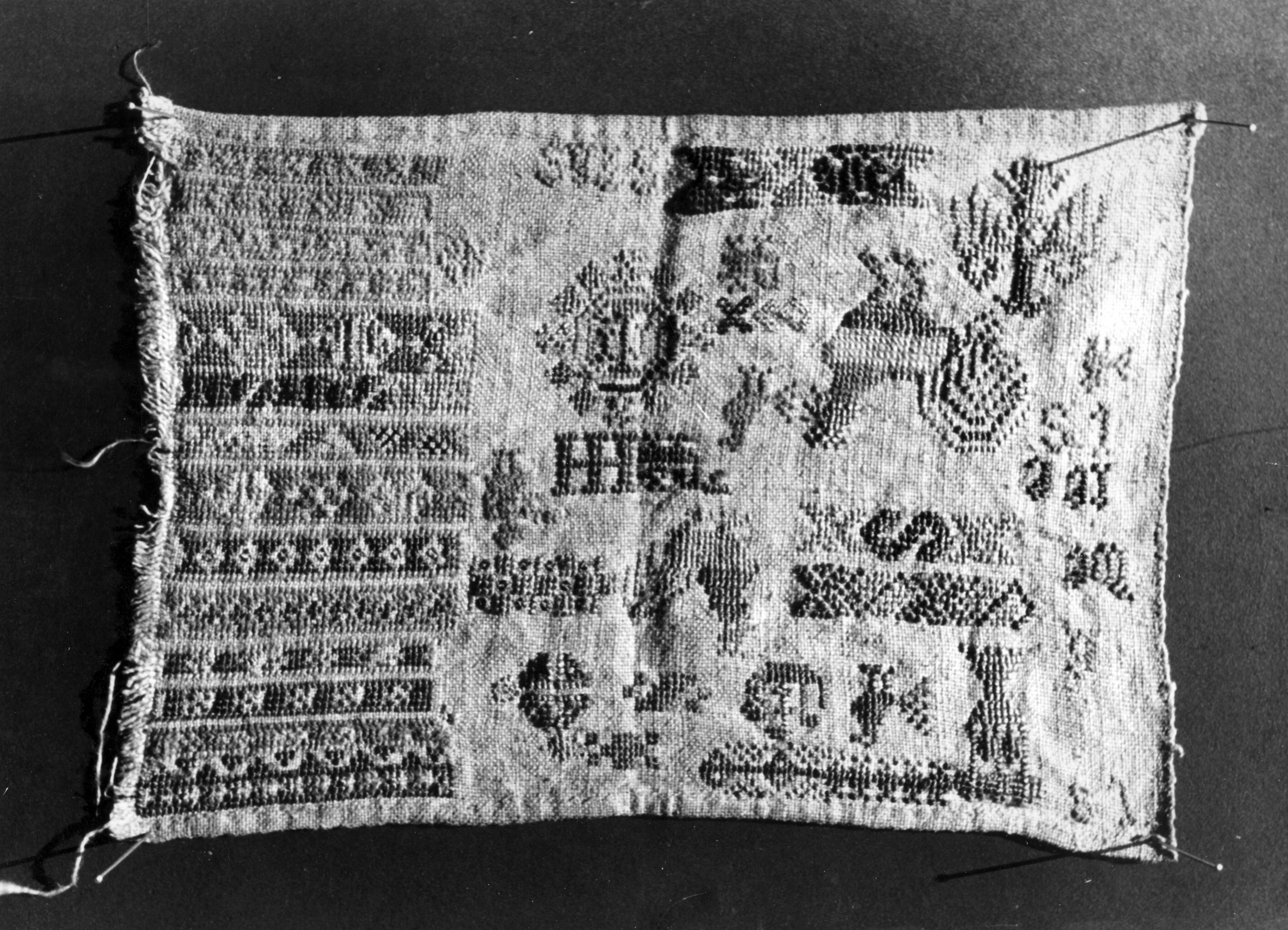 Detail van een merklap, Marken, 1943 (zwart-wit foto)