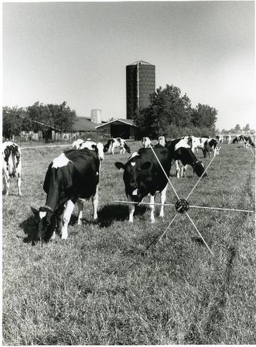 Foto in zwart-wit van koeien in een weiland afgezet ...