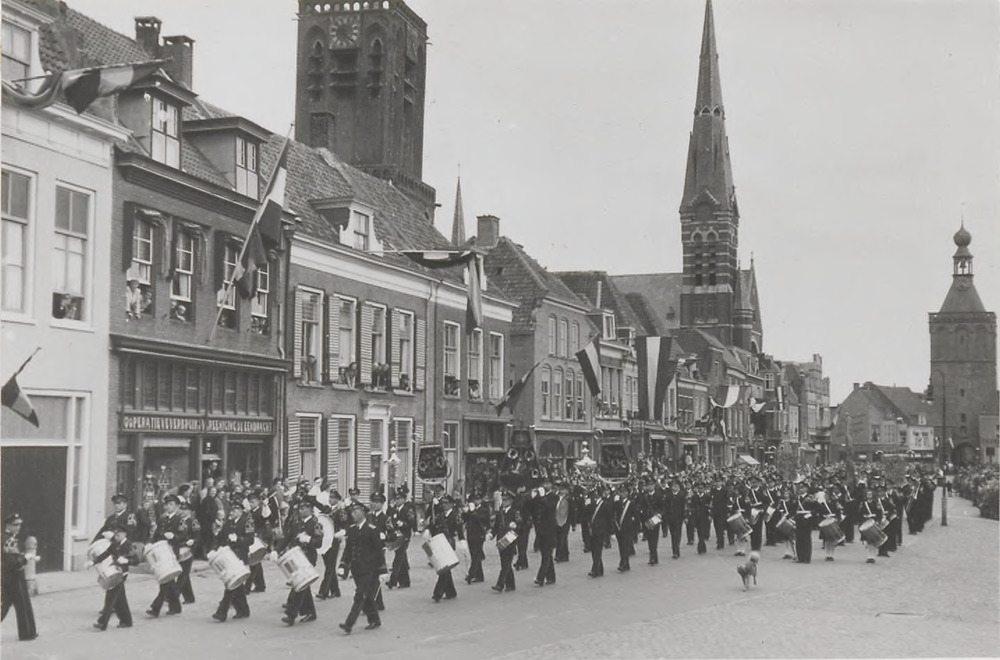 De muziekkorpsen "Pieter Aafjes" en "Concordia" op d...
