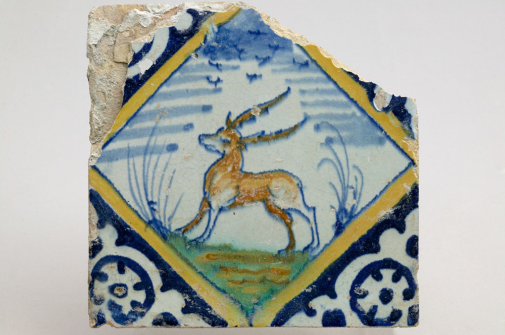 Tegelfragment, majolica, 15de/16de eeuw