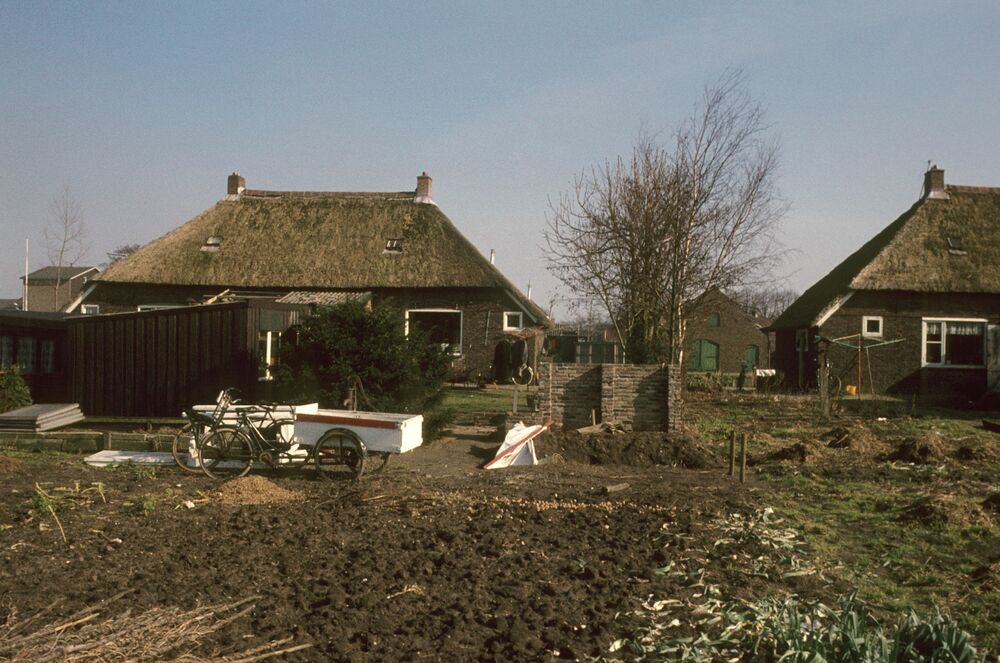 De tuin van een rietgedekte woning in het Nachthok