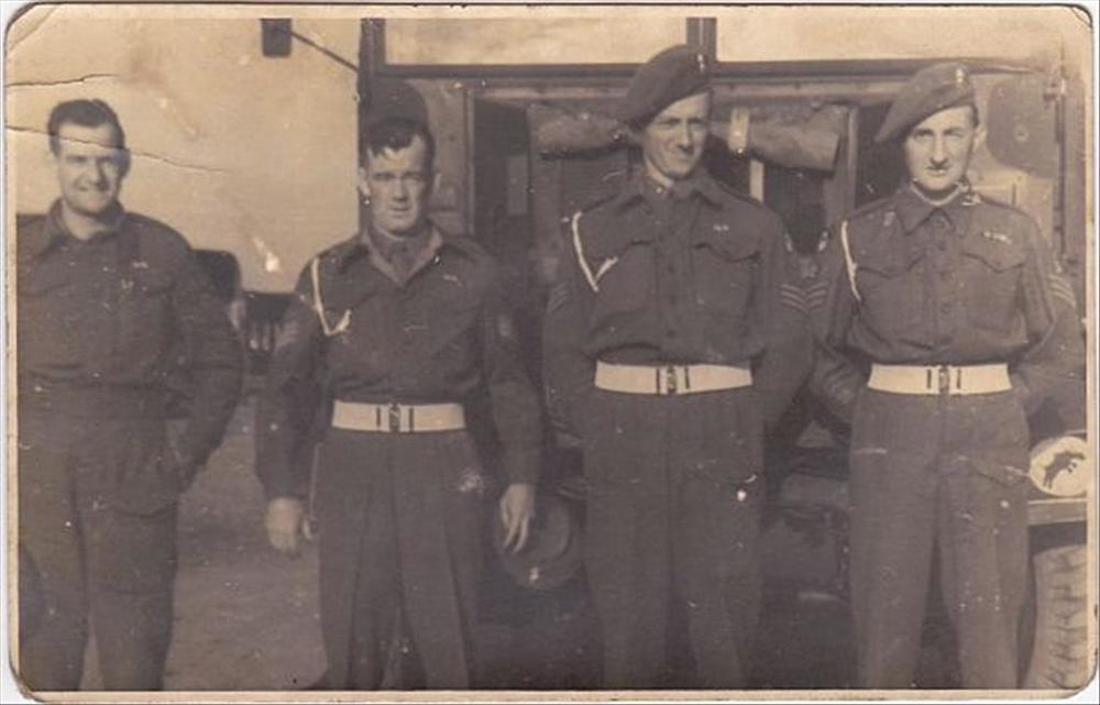 4 Britse Militairen, meest linkse is Patrick Mannion...
