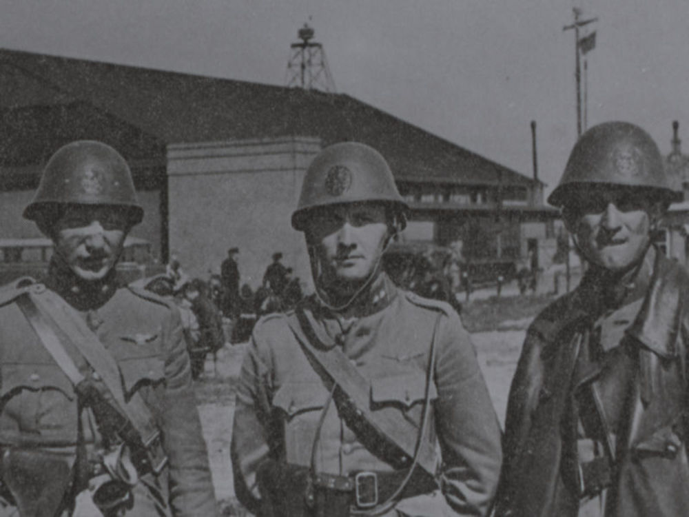 Twee borden. Een met de tekst "Militarischer Sicheru...