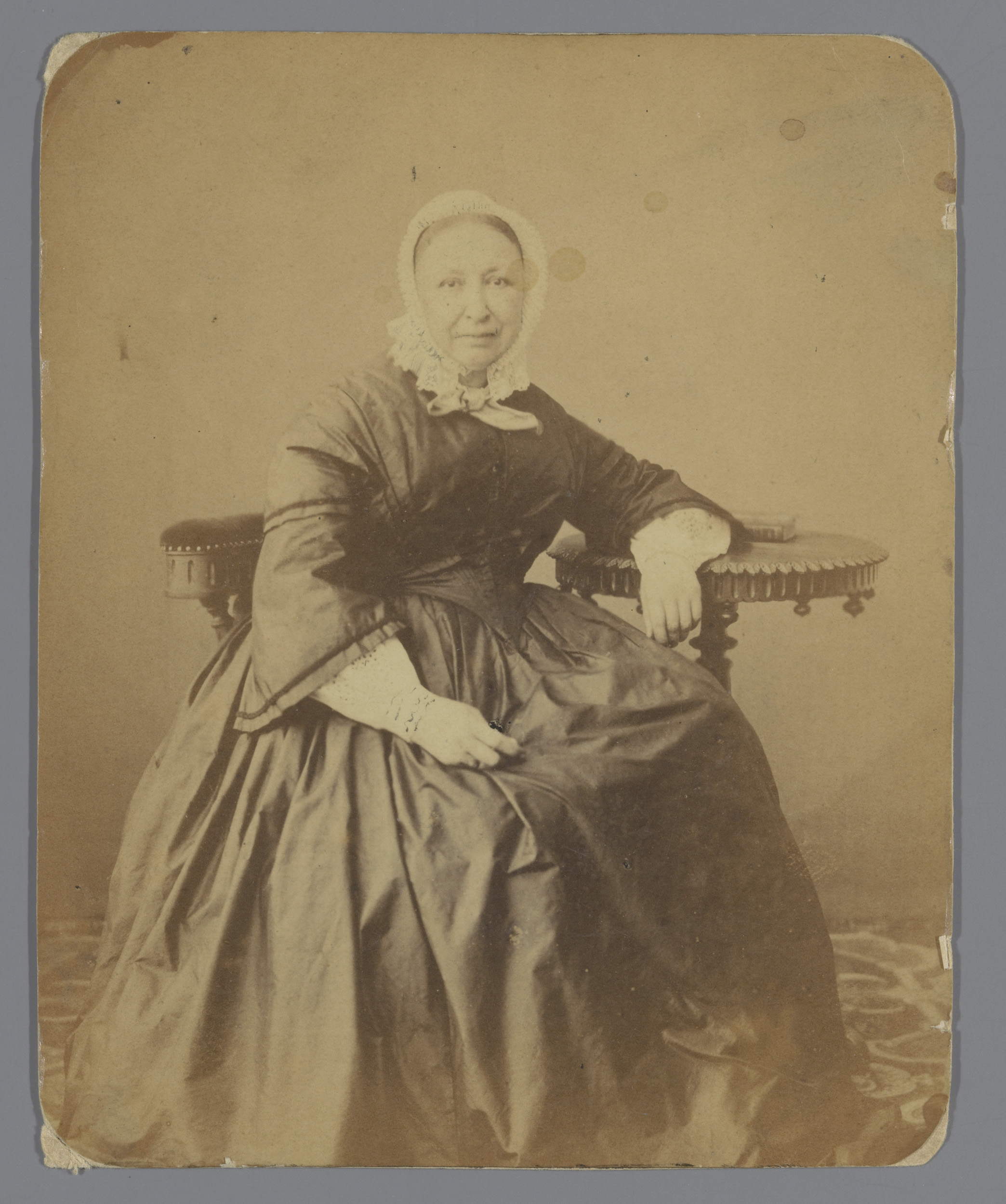 Portret van een onbekende vrouw met een kanten muts
