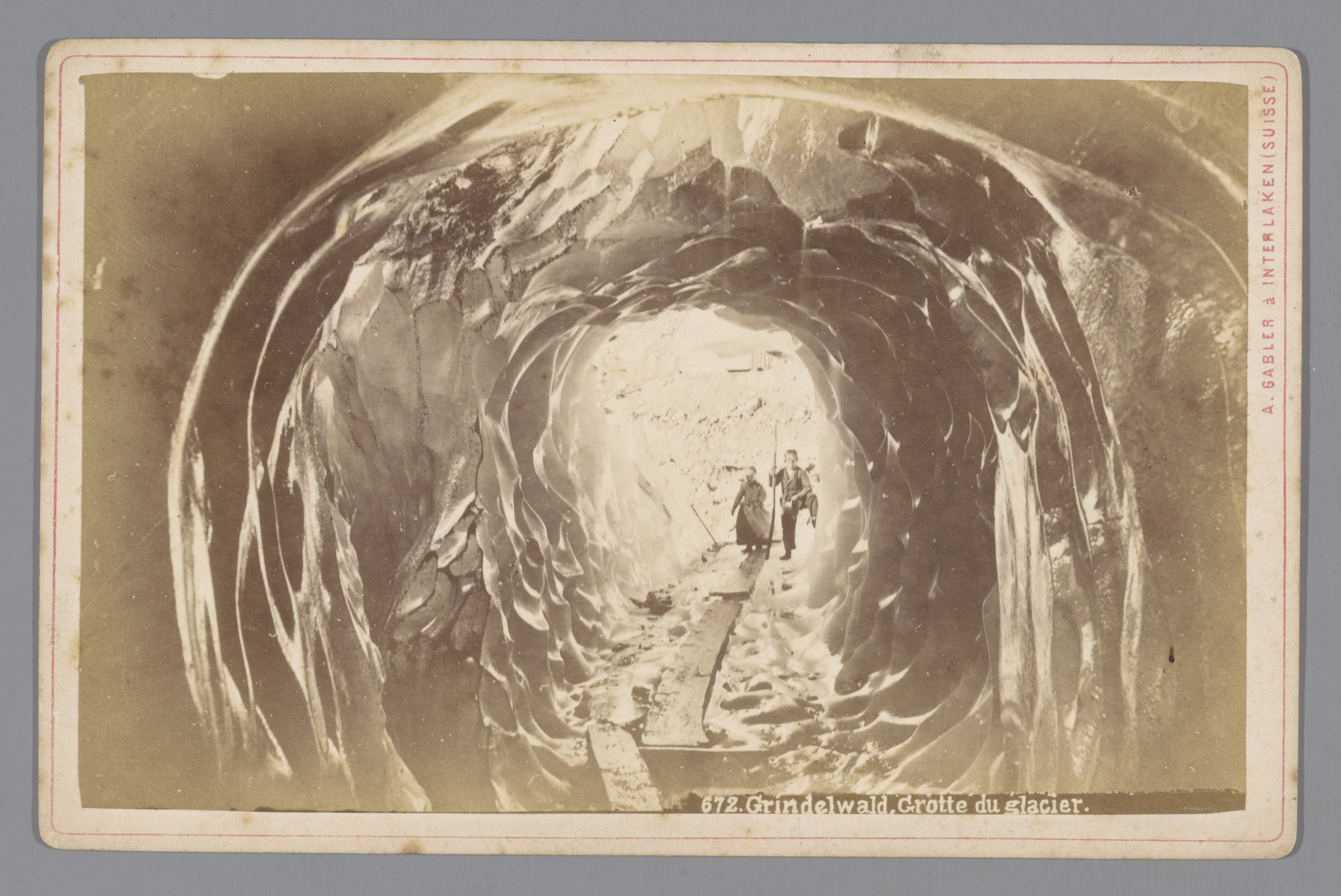 Mensen in een grot op de Grindelwaldgletscher in Zwi...