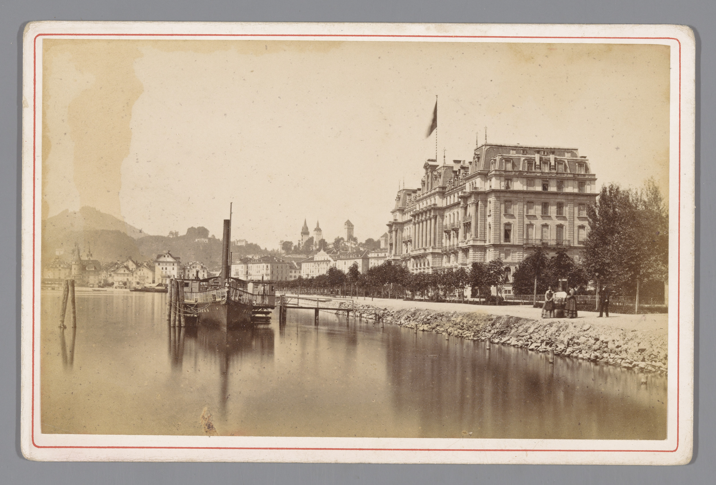 Gezicht op Hotel National op een kade in Luzern