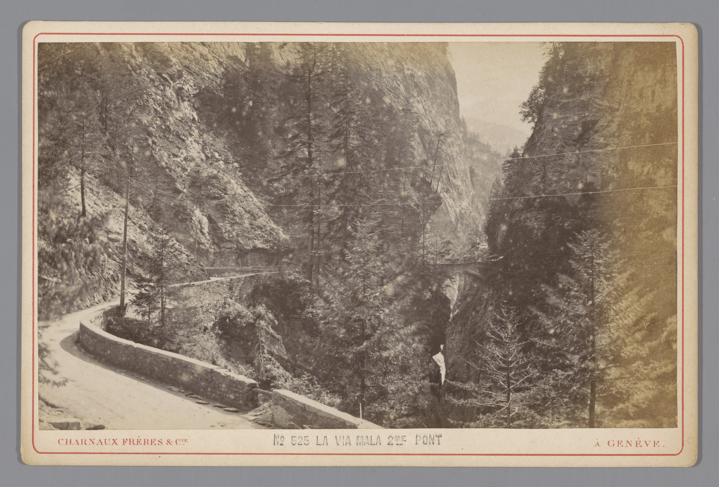 Gezicht op de tweede brug in de Via Mala in Zwitserland
