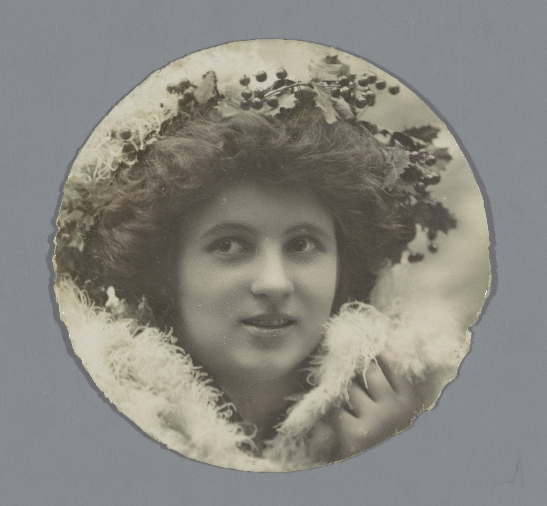 Portret van een onbekende vrouw met een hulsttak in ...