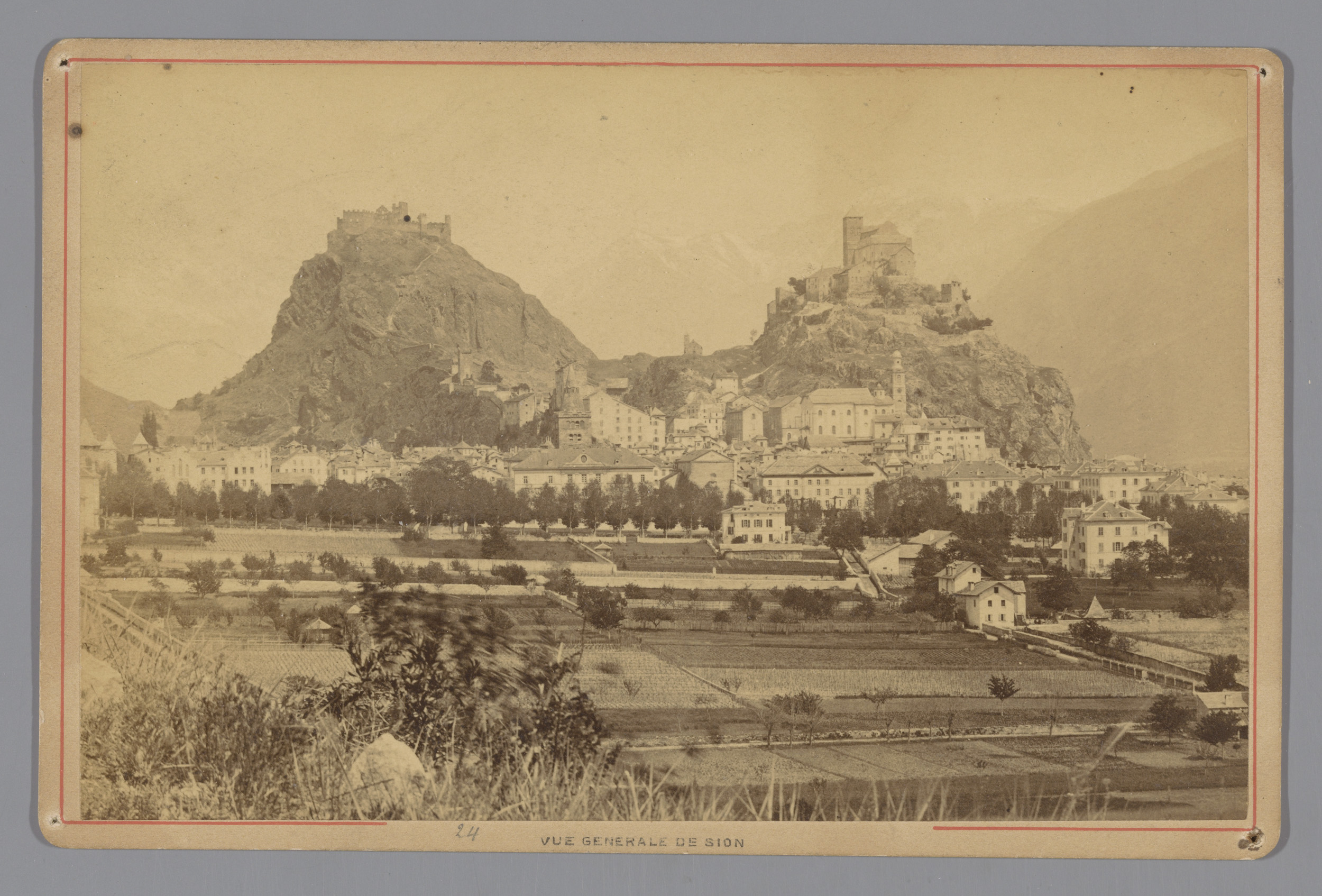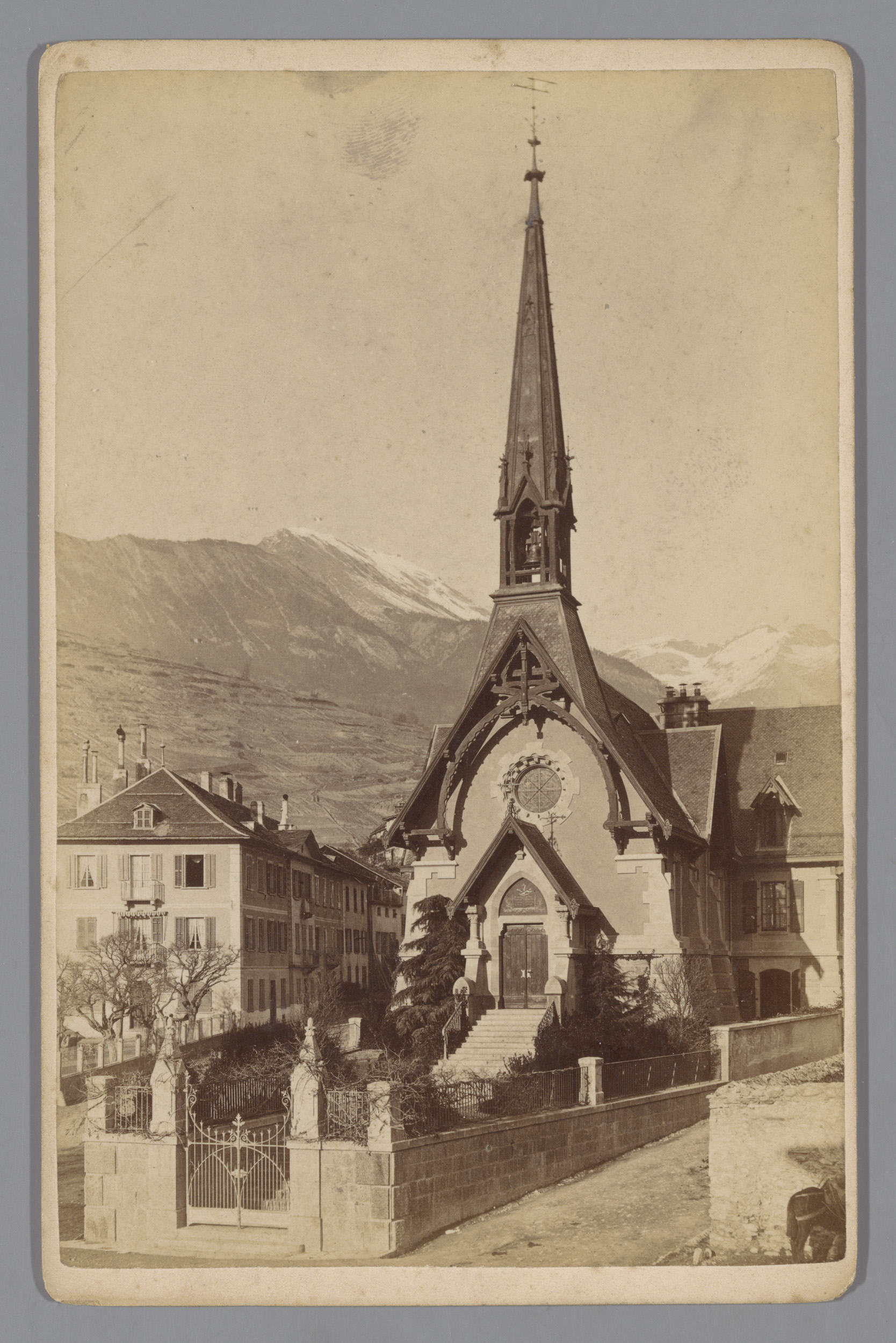 Gezicht op een kerk in vermoedelijk Sion in Zwitserland