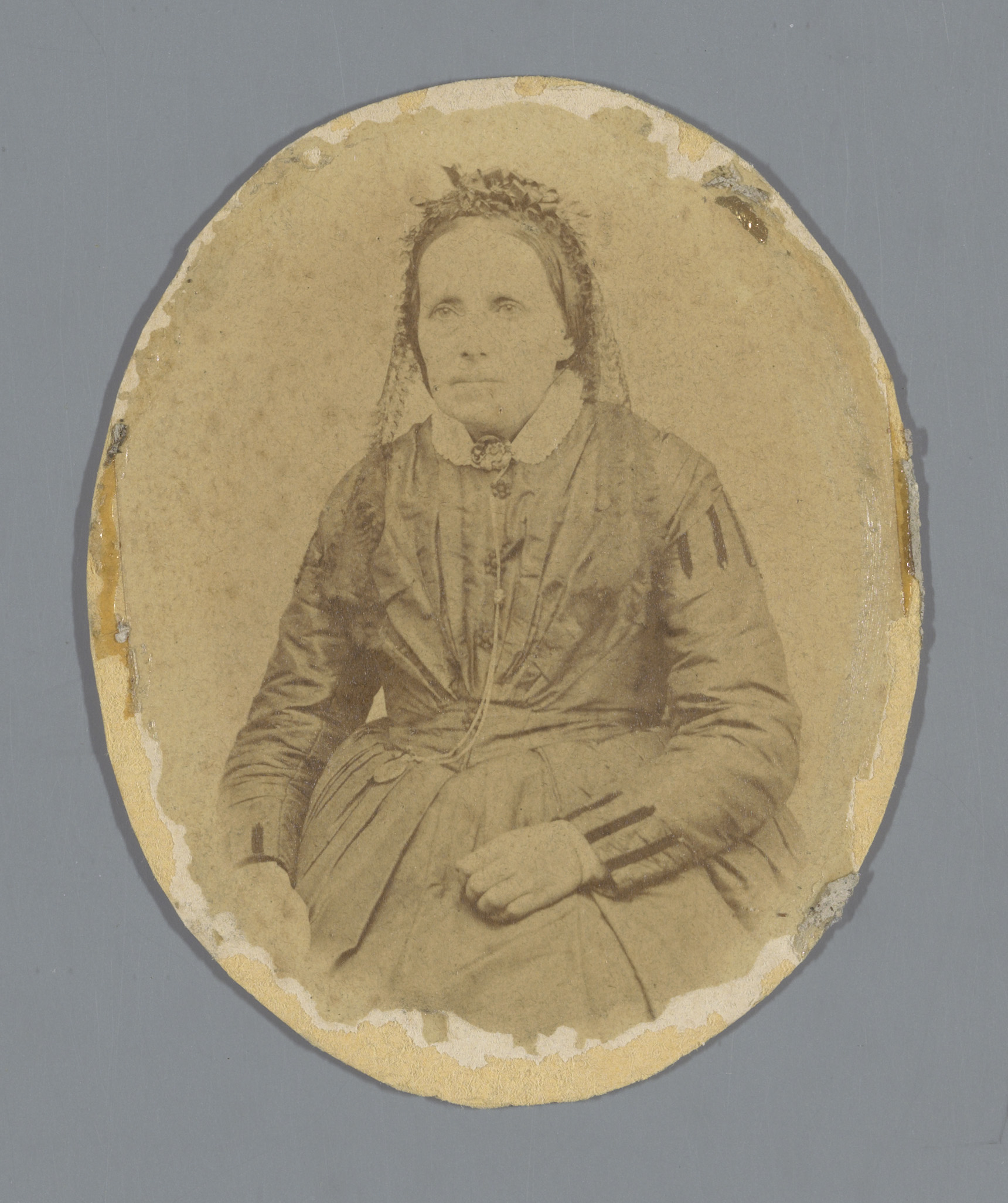 Portret van een onbekende vrouw met muts en oorijzers