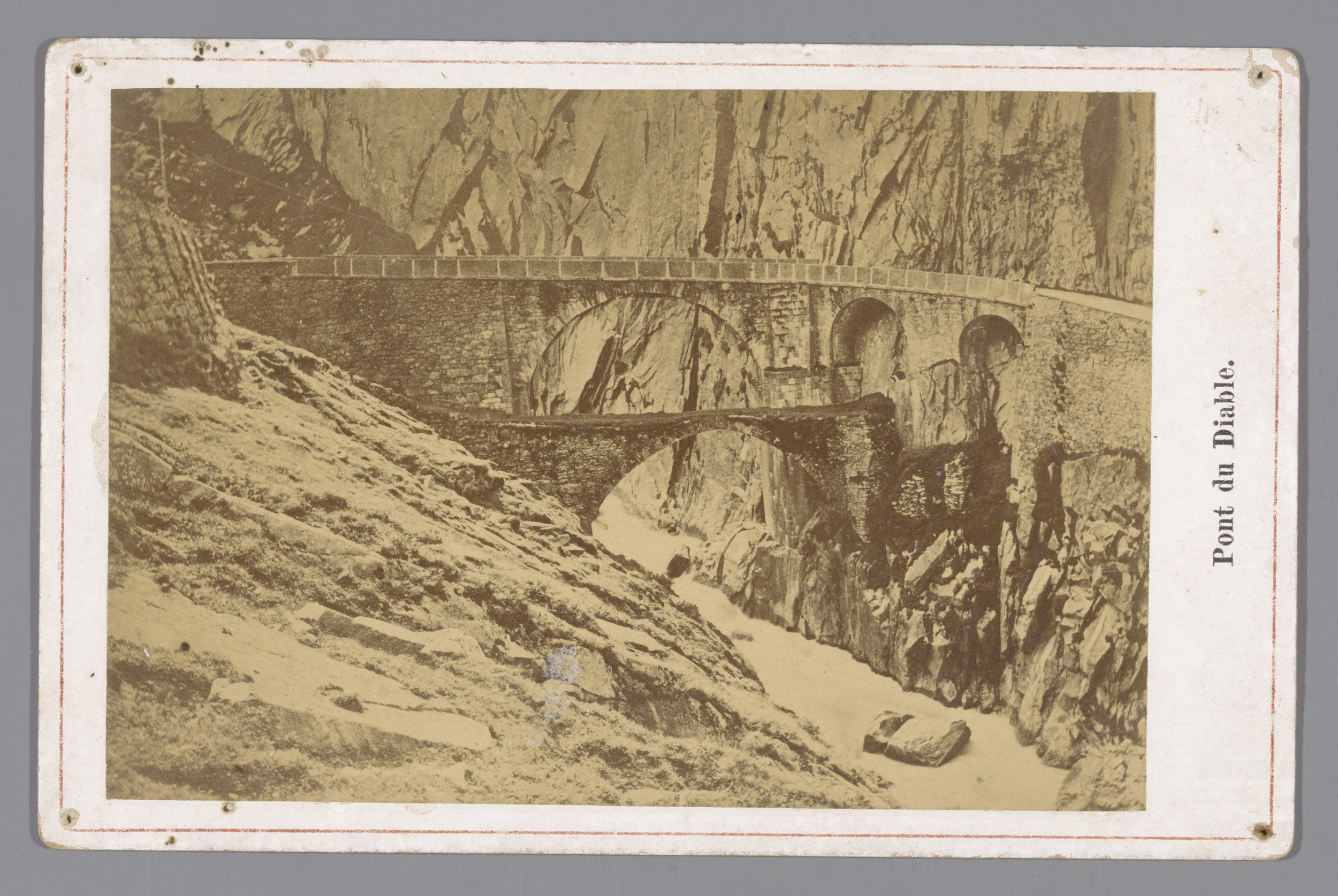 Gezicht op de Teufelsbrücke in de Schöllenen in Zwit...