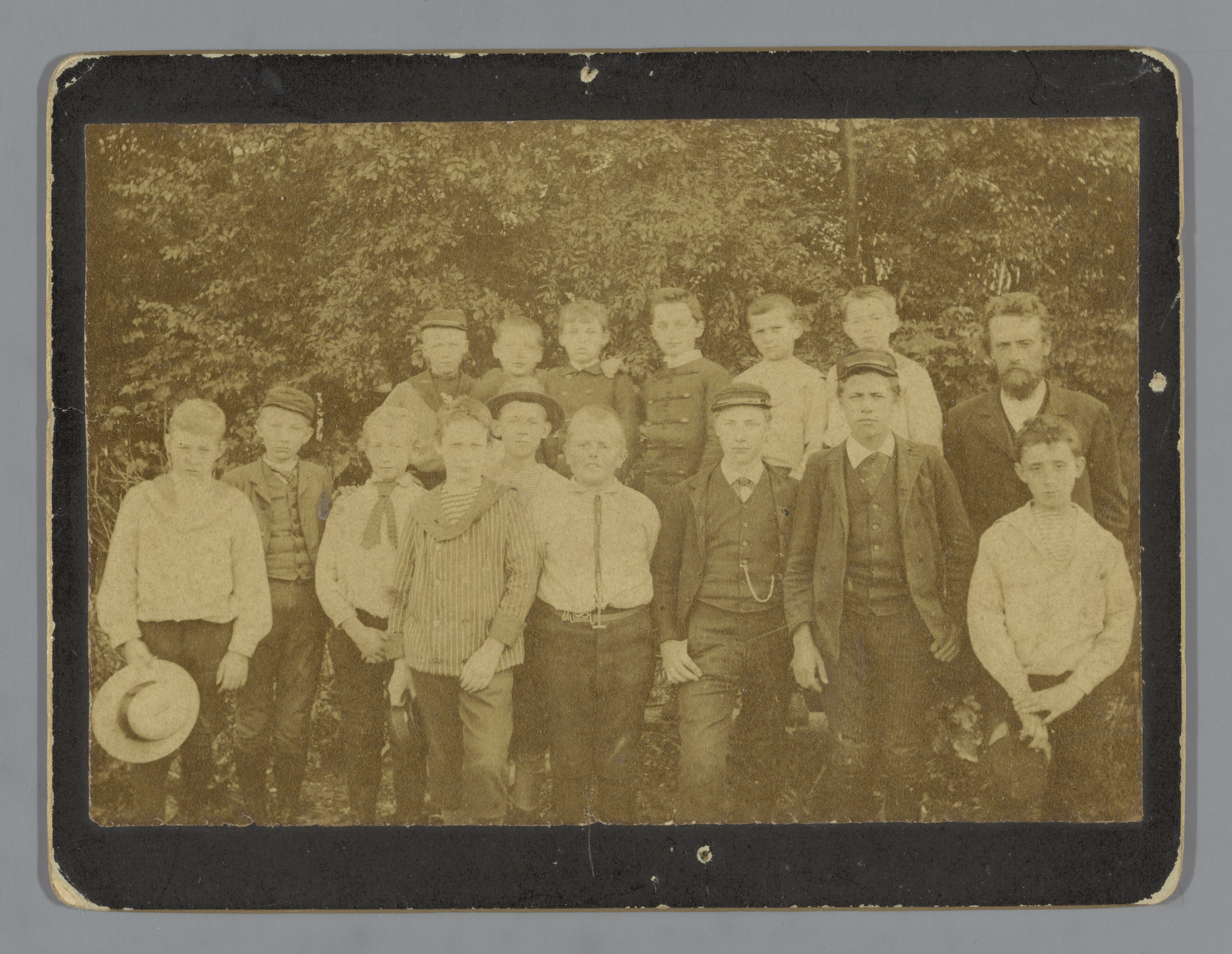 Groepsportret van een onbekende schoolklas met jonge...