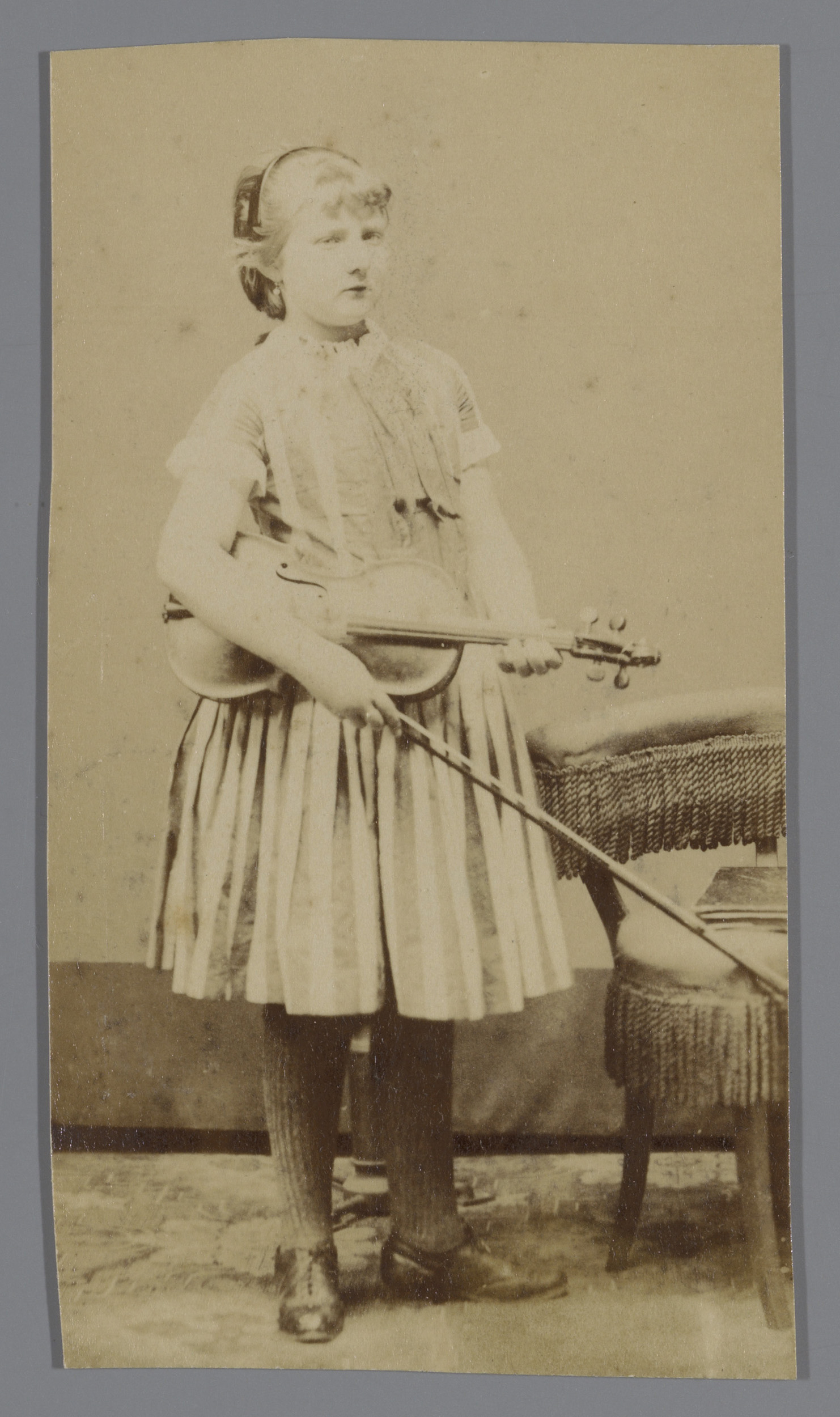 Studioportret van een onbekend meisje met een viool