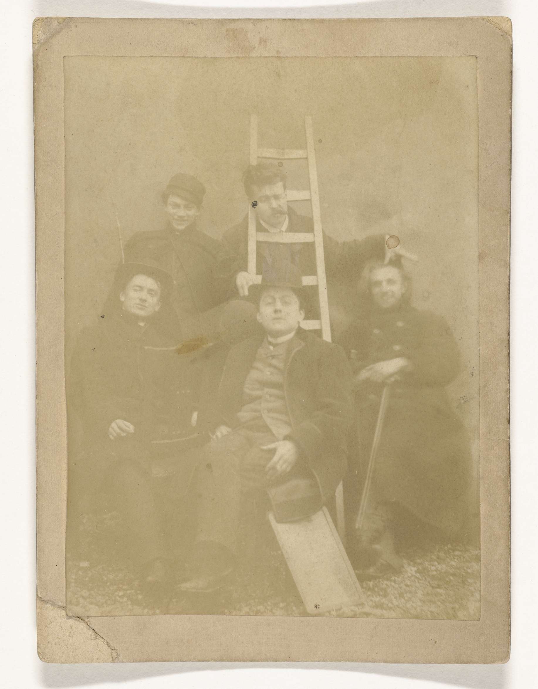 Groepsportret van vijf onbekende vrouwen en een man ...