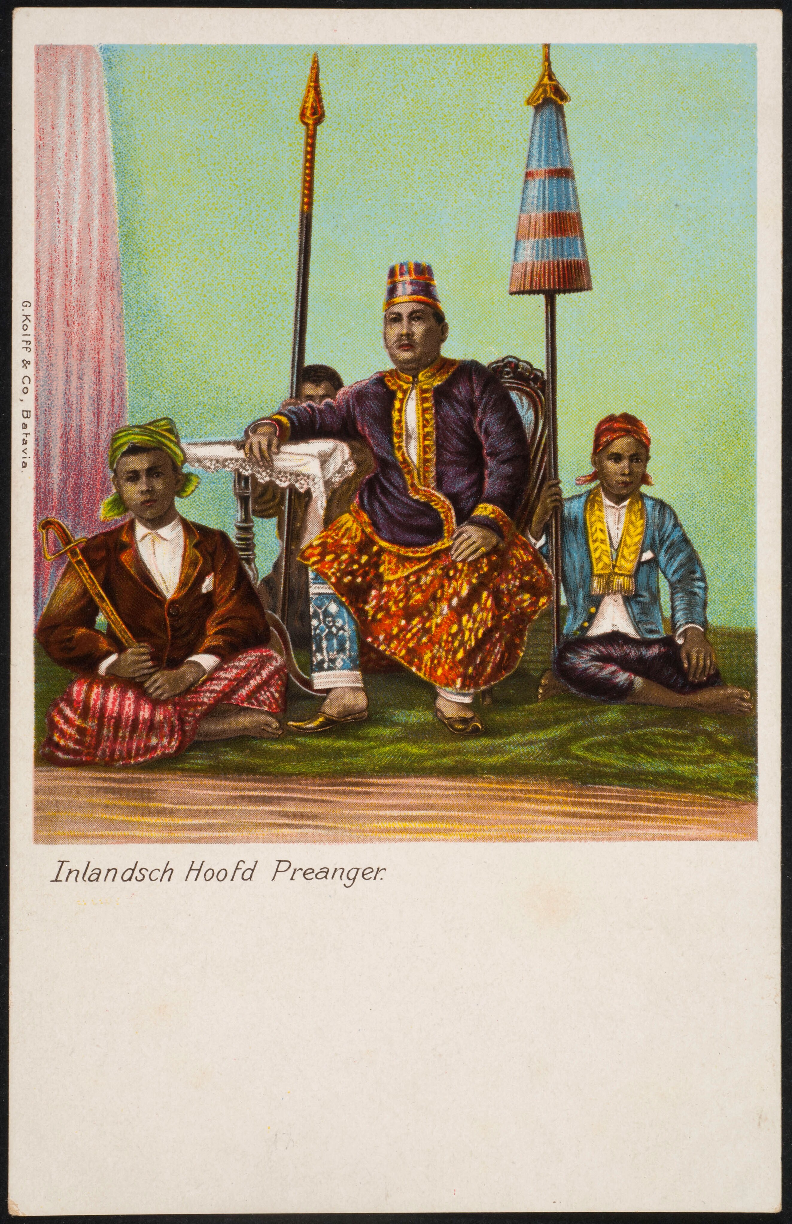 Chromolitho van een hoofd in Preanger