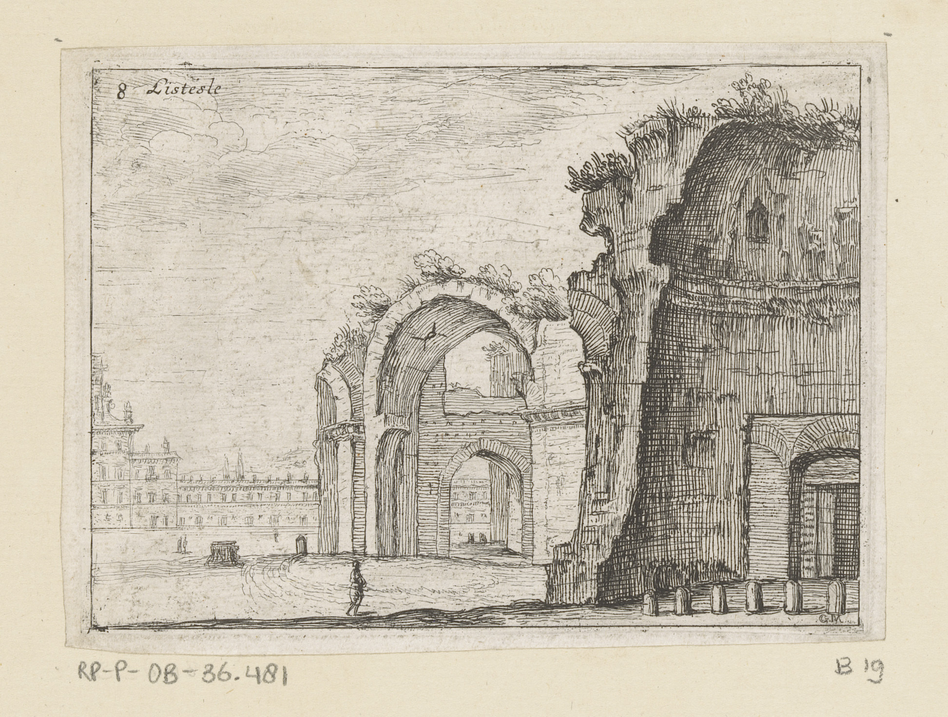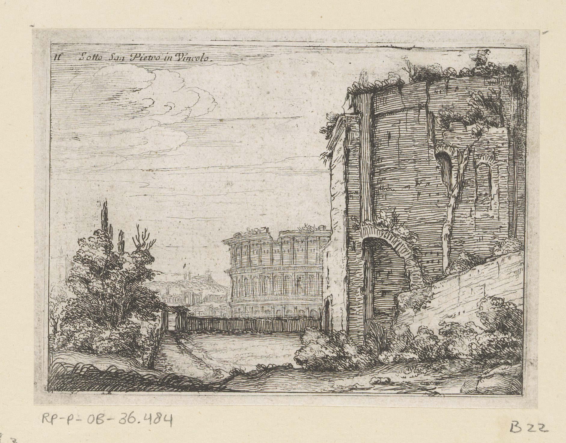 Ruïnes van antiek bouwwerk en het Colosseum te Rome