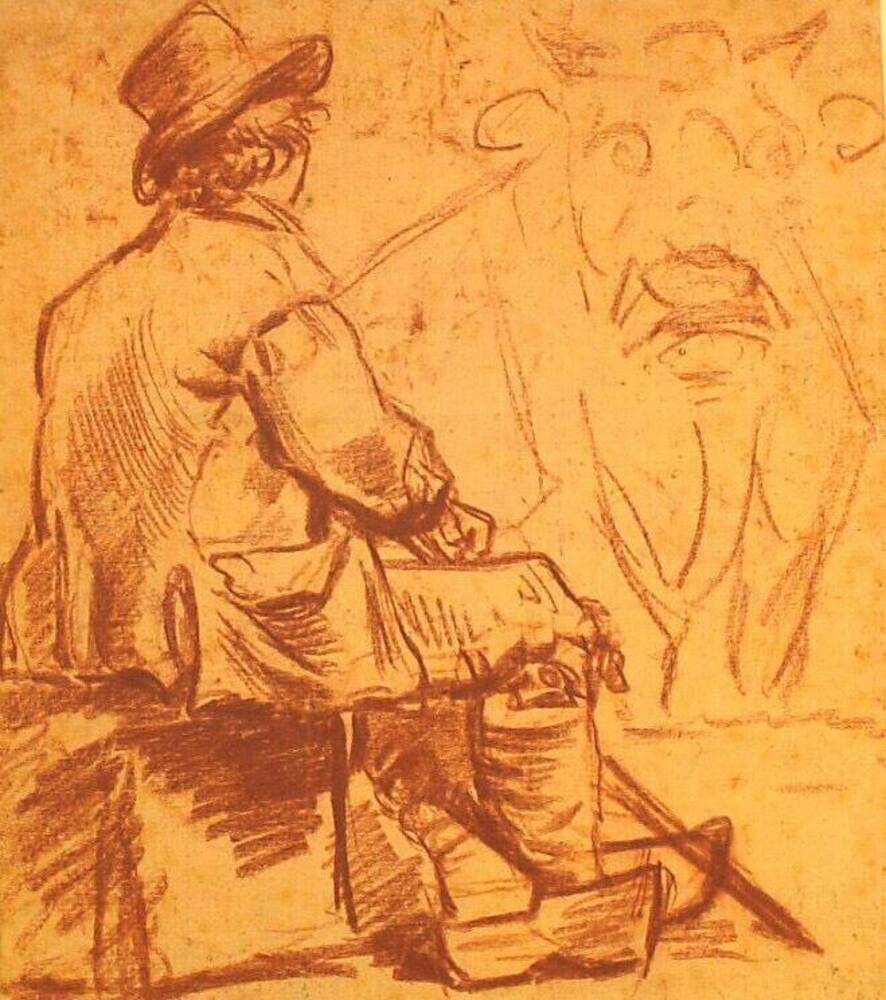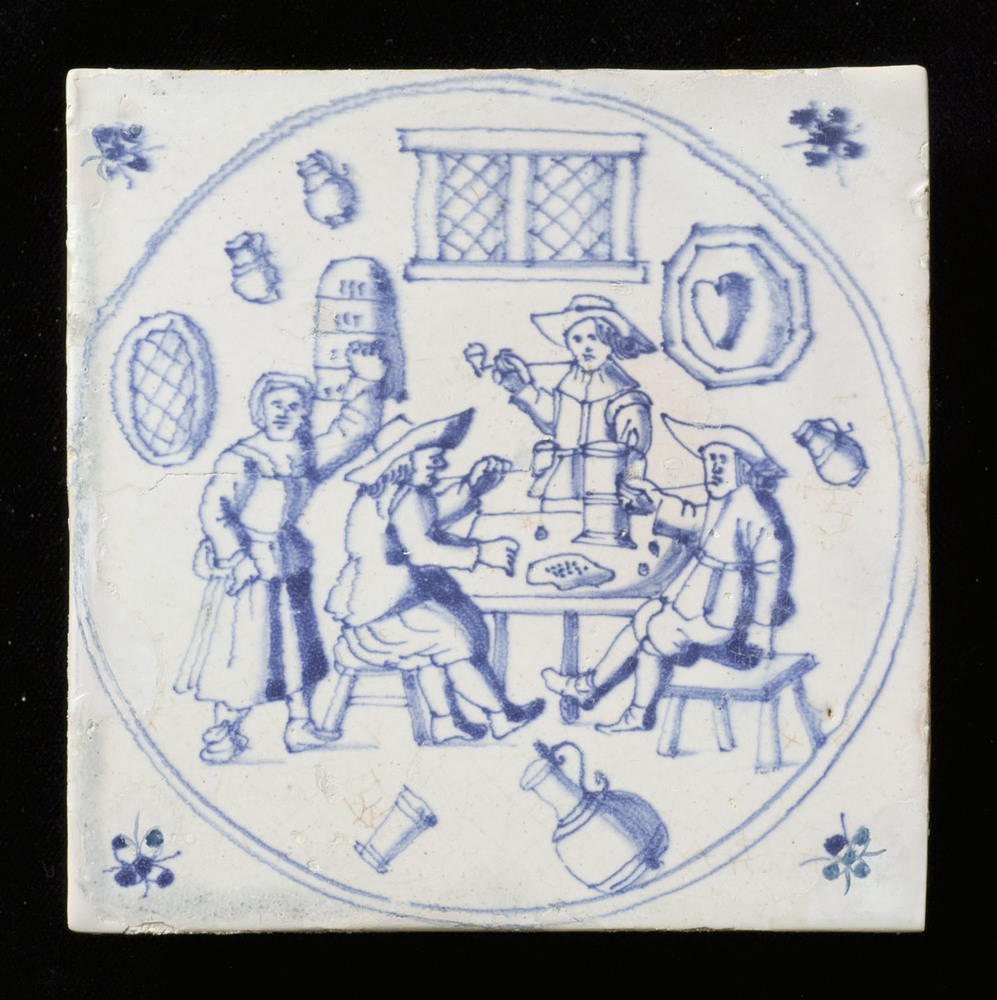 Tegel van keramiek, tinglazuur, met een genretaferee...
