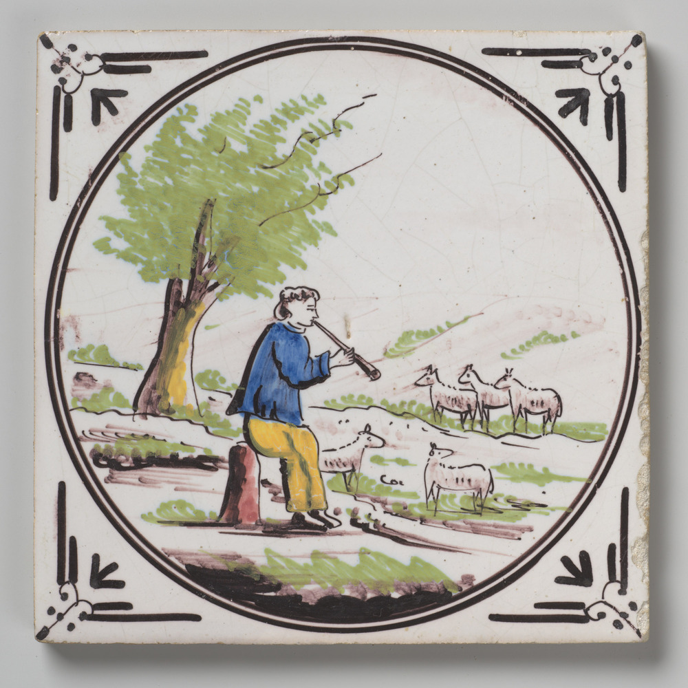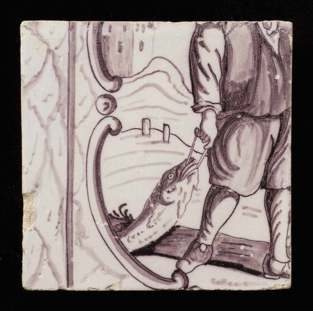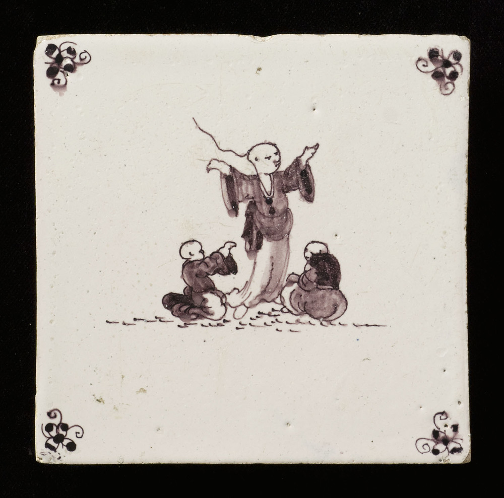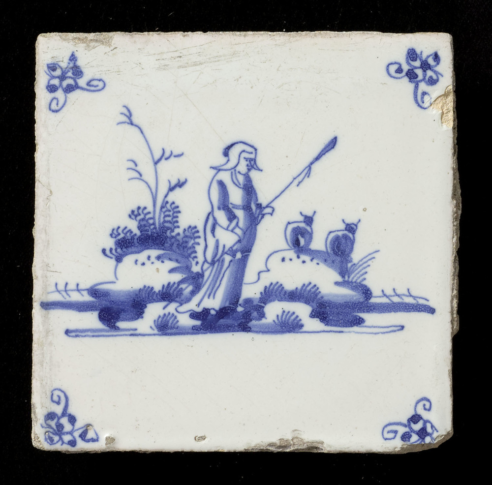 Tegel van keramiek, tinglazuur, gevlamd ca. 1660-1700