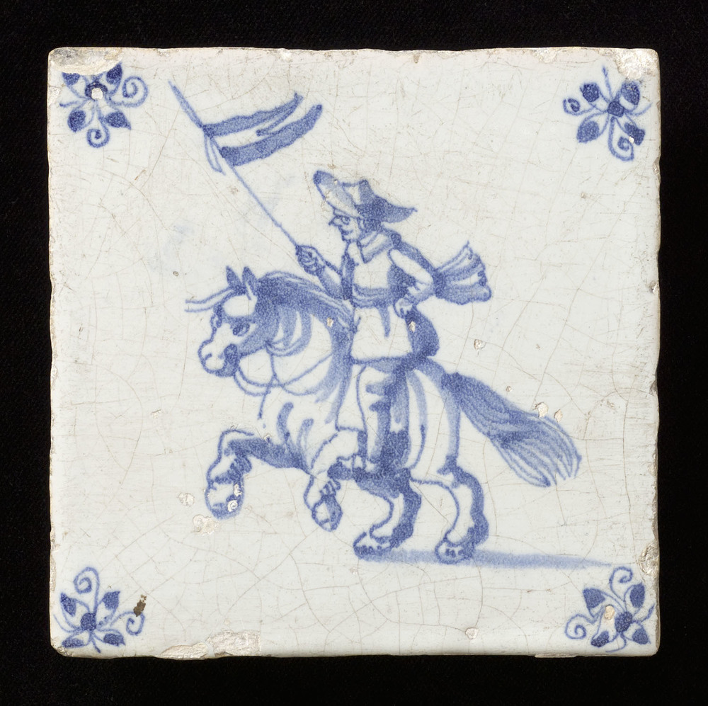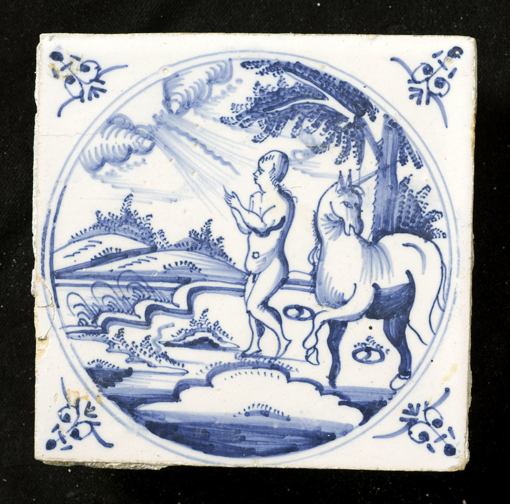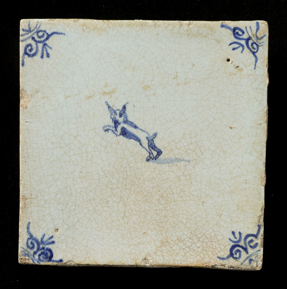 tegel van keramiek met tinglazuur, voorstellende: ho...
