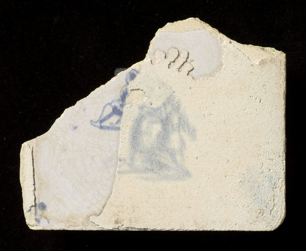 Tegel van keramiek, tinglazuur, voorstellende onduid...