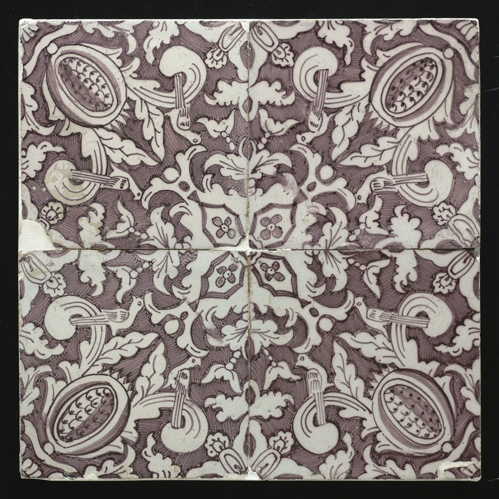 tegelveld, bestaande uit vier tegels van aardewerk m...