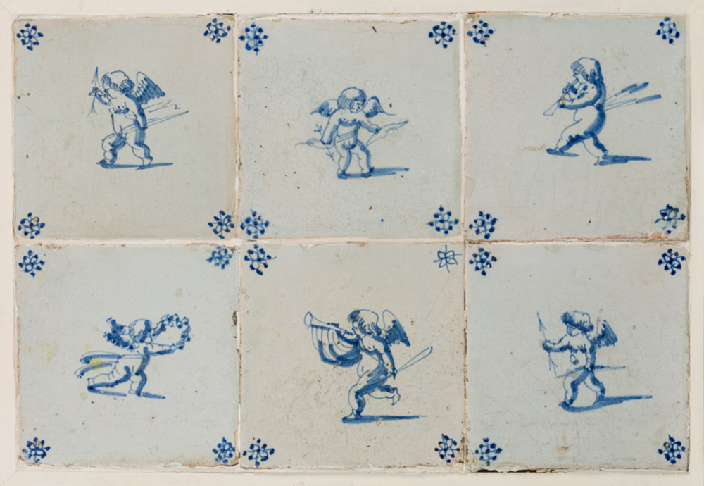 Tegelveld van keramiek, tinglazuur, voorstellende ee...