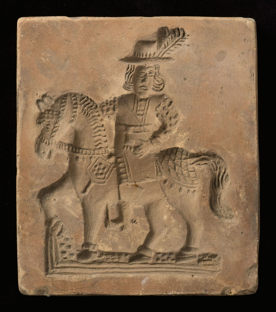 Tegel van keramiek, reliëf, voorstellende een ruiter...