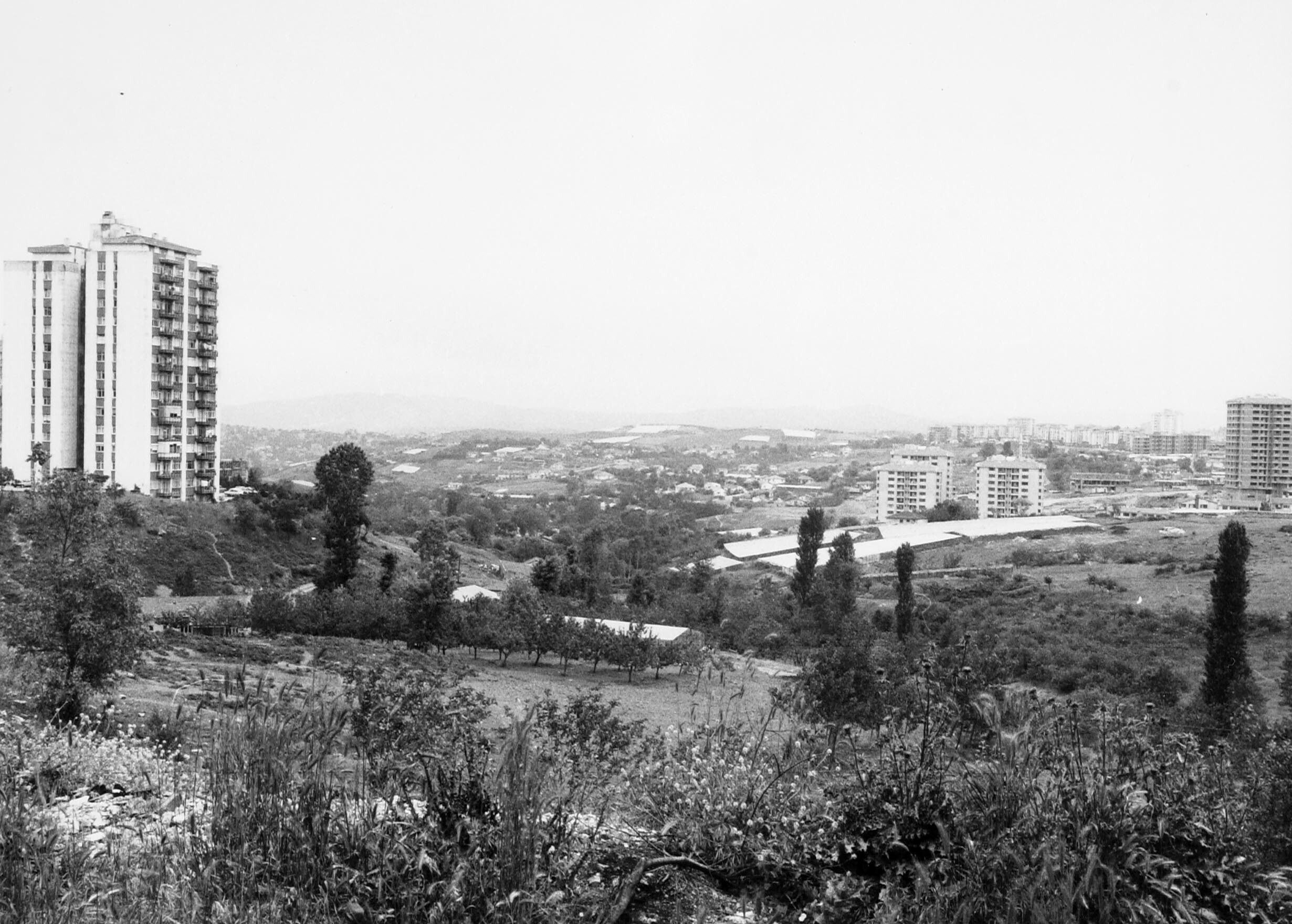 Gezicht op enekele flatgebouwen in de stadswijk Leve...