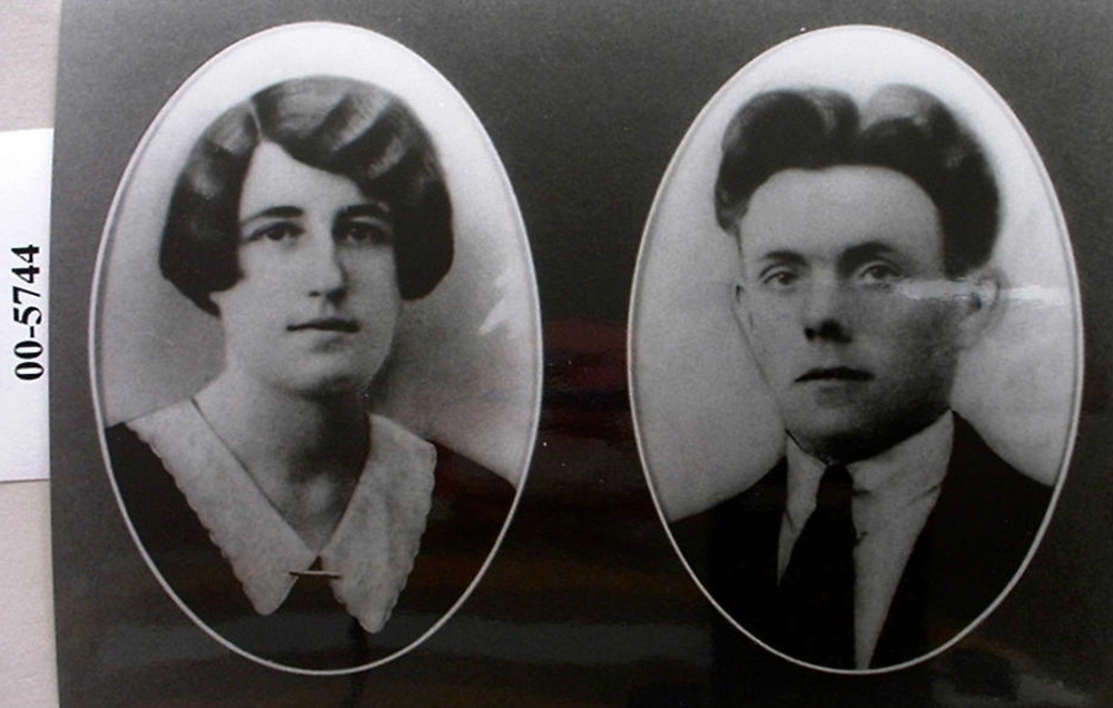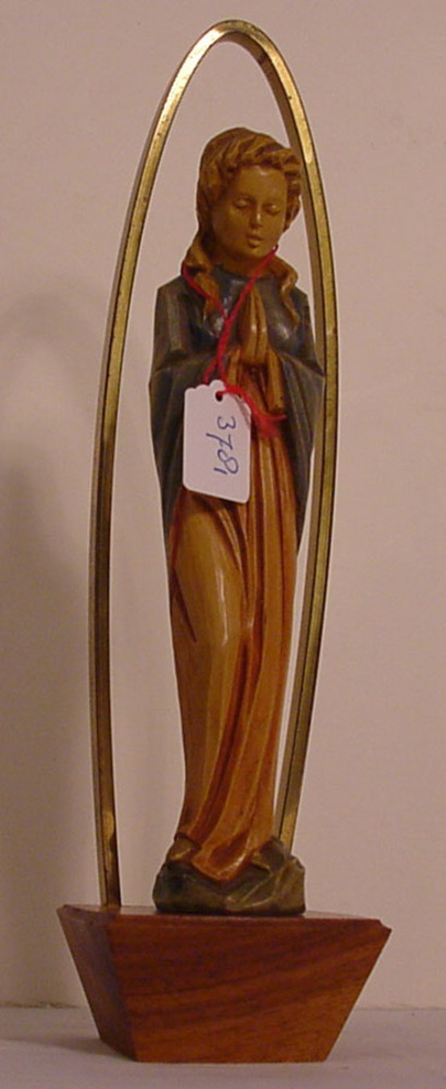 Beeldje voorstellende Maria in een ovaal van hout en...