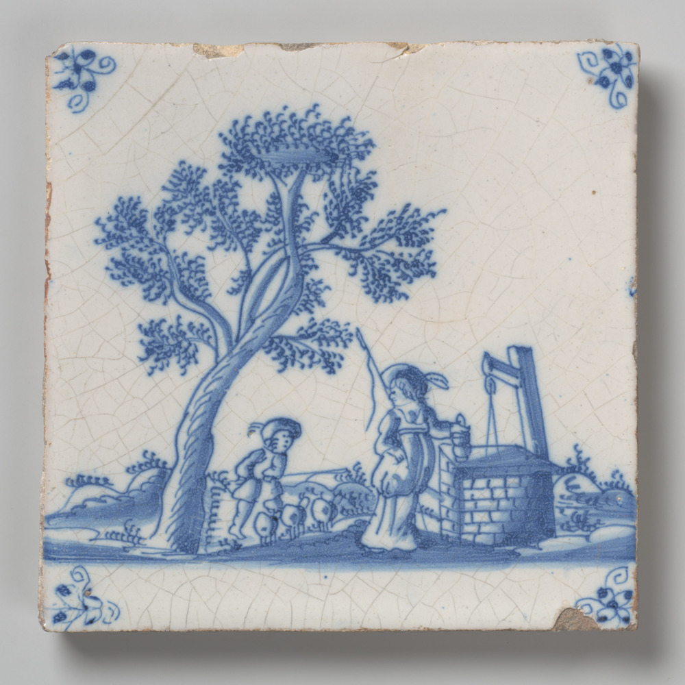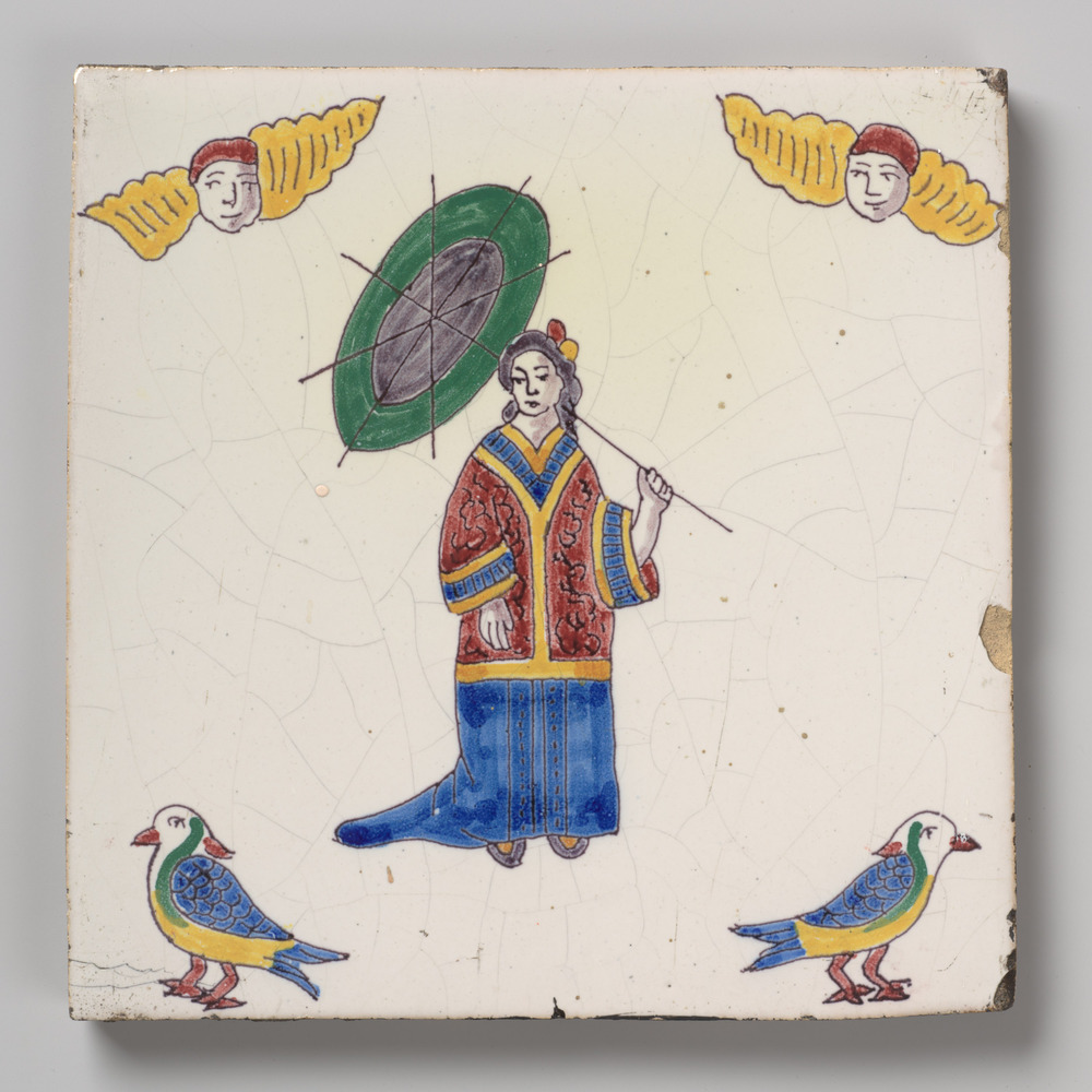 Tegel van keramiek, tinglazuur, voorstellende een Ch...