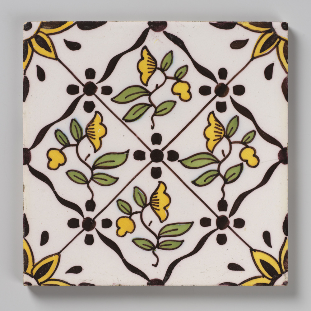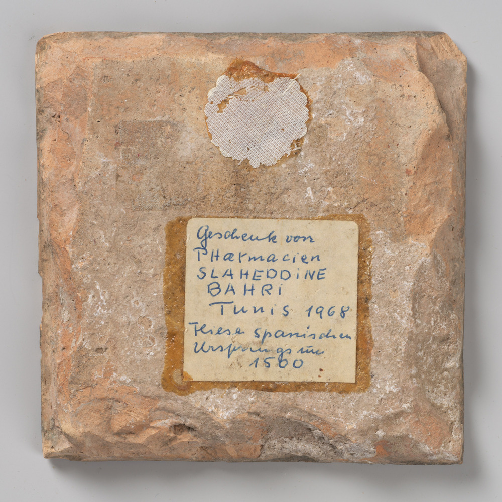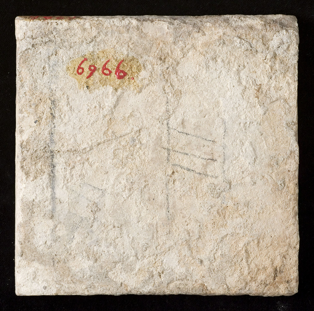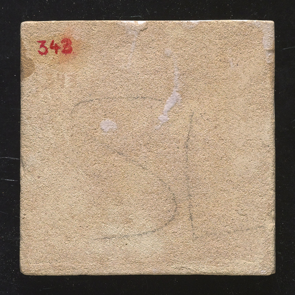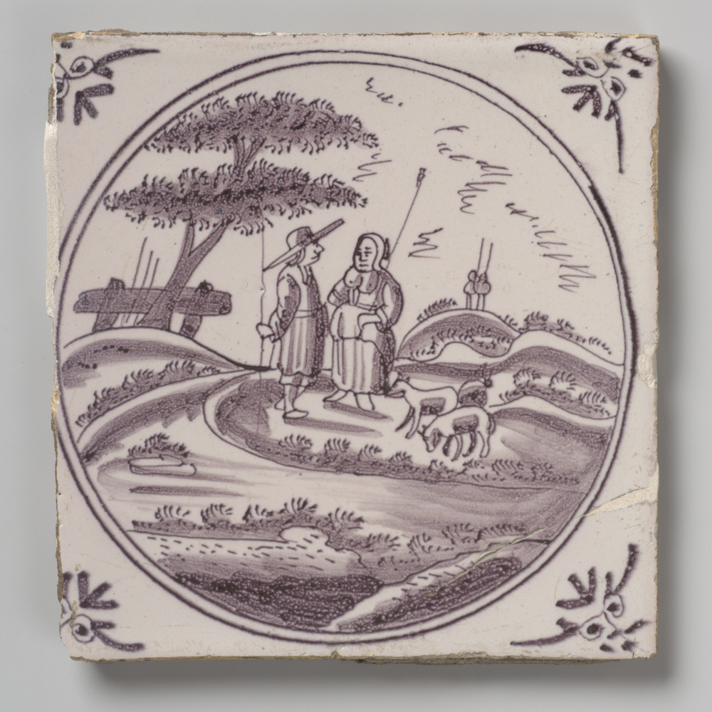 Tegel van keramiek met tinglazuur, voorstellende: gr...