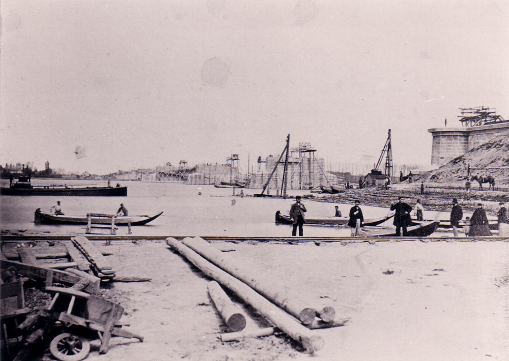 Bouw eerste spoorbrug over de waal bij Zaltbommel ro...