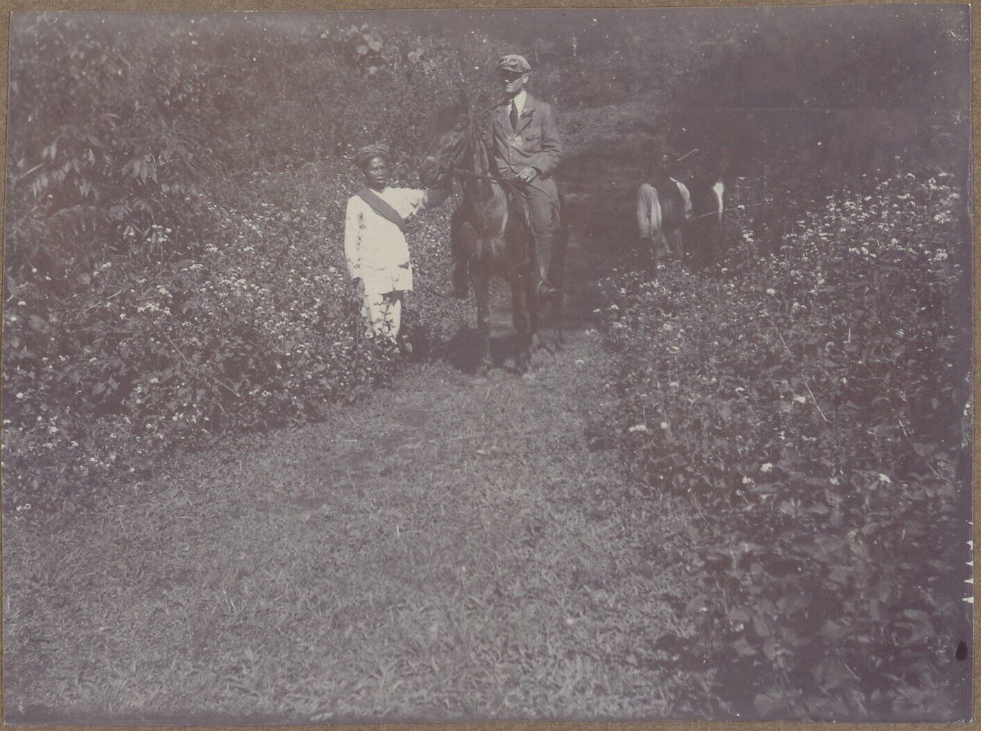 Een nlerlandse man te paard onderweg naar de krater ...